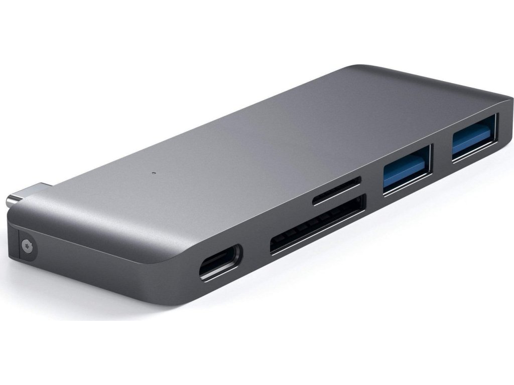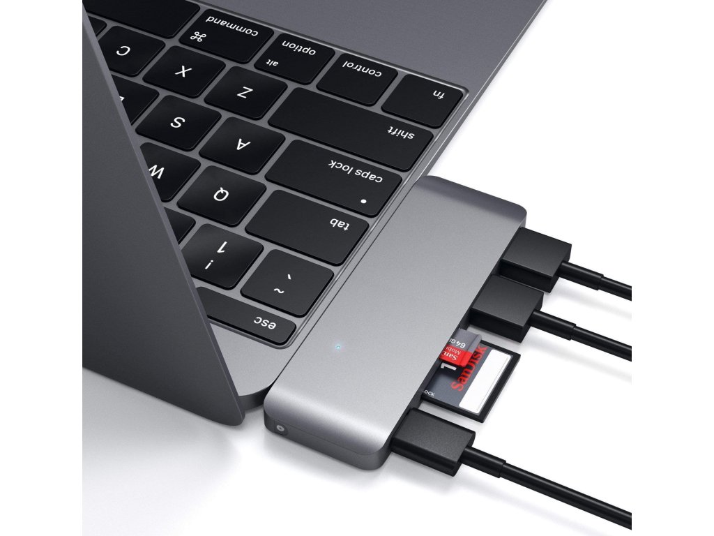 Adaptér Satechi pro USB-C slouží jako hub pro nové MacBooky. Díky němu výrazně rozšíříte nabídku portů. Po zasunutí do počítače nikde nepřekáží žádné kabely, protože se adaptér přisune přímo k šasi stroje.