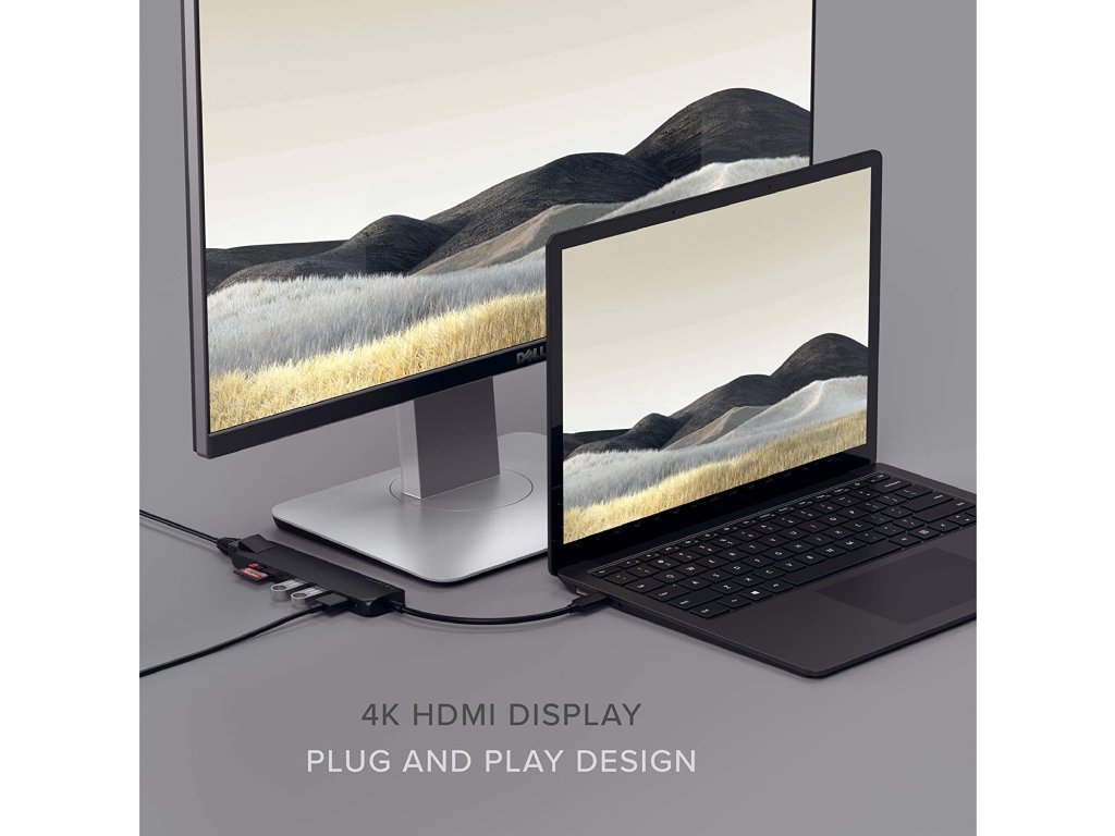 Víceportový adaptér USB-C obsahuje mimo jiné HDMI výstup pro připojení externího monitoru. Na ten lze posílat obraz v rozlišení 4K při obnovovací frekvenci 30 Hz. Stačí jen zapojit HDMI kabel a užívat si větší zobrazení, které současně nabídne vyšší pracovní efektivitu.
