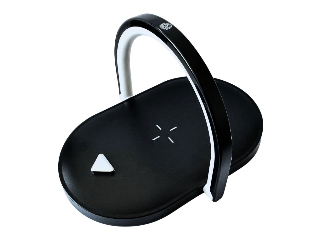 Lampa, stojan na telefon a bezdrátová nabíječka s dotykovým zapínáním lampičky s režimem tří intenzit svítivosti.