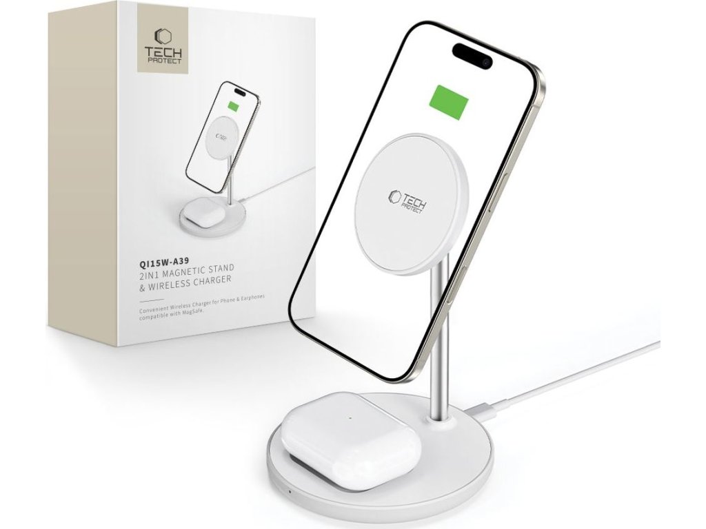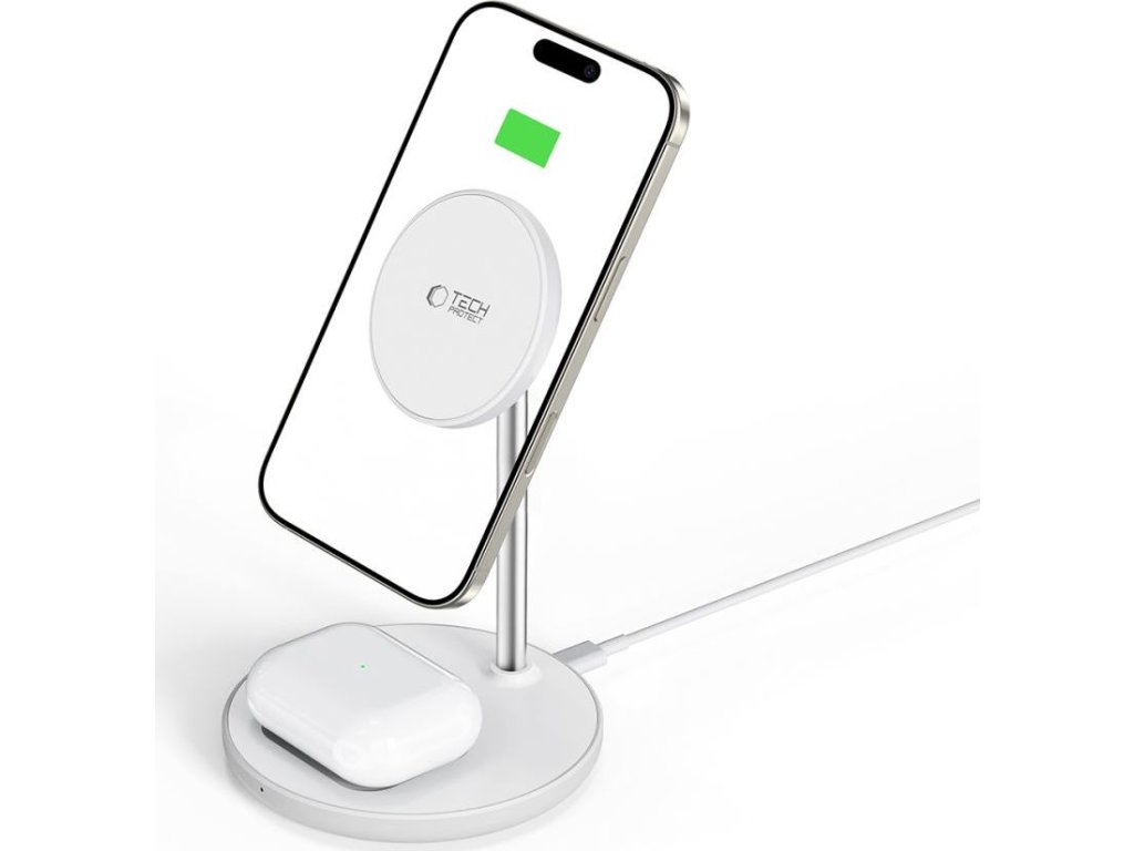 Bezdrátová rychlá nabíječka pro iPhone a AirPods QI15W-A39 od značky Tech-Protect vám zjednoduší život. Tento chytrý gadget vám umožní pohodlně dobíjet energii ve všech smartphonech s technologií MagSafe i v bezdrátových sluchátkách Apple AirPods – vše na jednom místě.