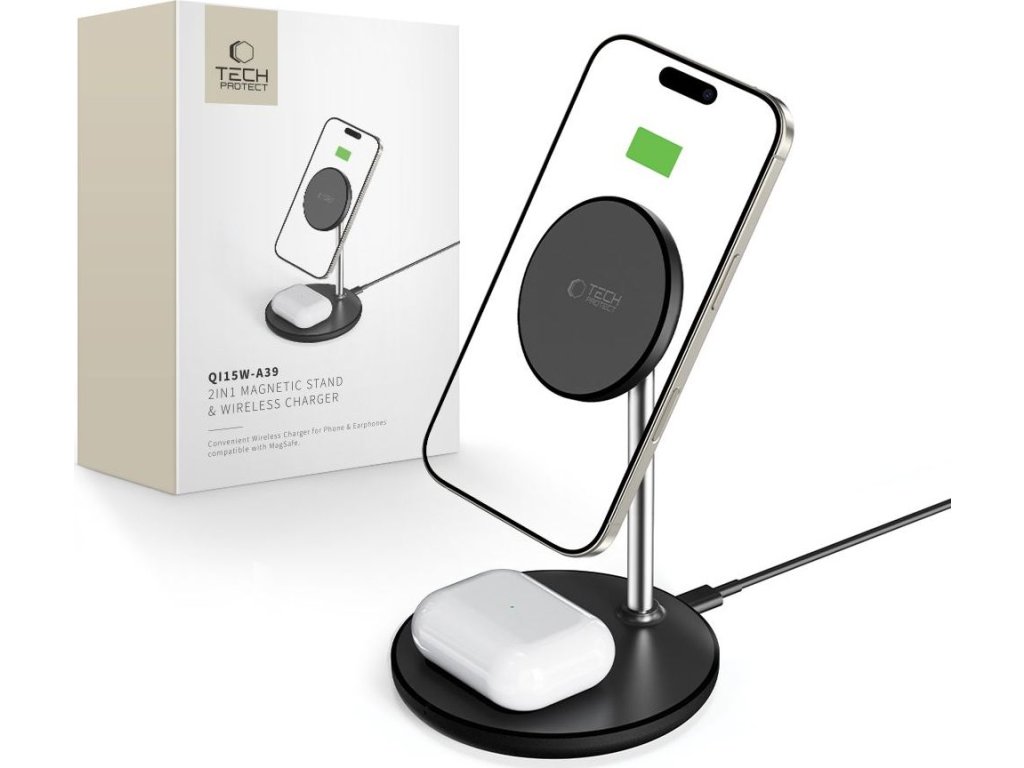 Bezdrátová rychlá nabíječka pro iPhone a AirPods QI15W-A39 od značky Tech-Protect vám zjednoduší život. Tento chytrý gadget vám umožní pohodlně dobíjet energii ve všech smartphonech s technologií MagSafe i v bezdrátových sluchátkách Apple AirPods – vše na jednom místě.