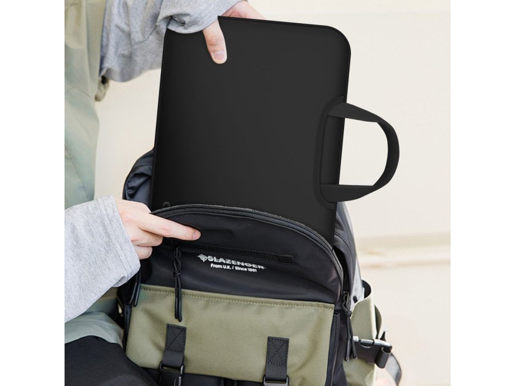 Brašna na notebook má na vrchní části dvě ucha, za které je možné ji přenášet. Jsou pevně přišita k tašce a zajistí, že bezpečně vždy svůj pracovní stroj přenesete tam, kam budete potřebovat.