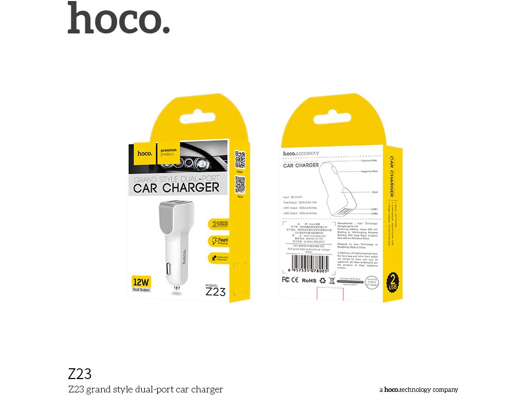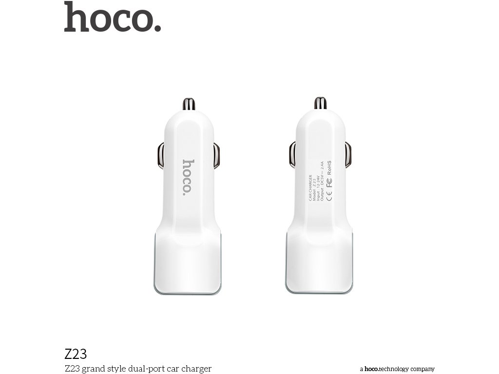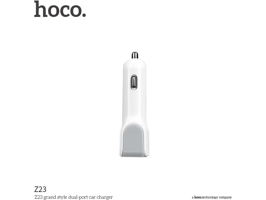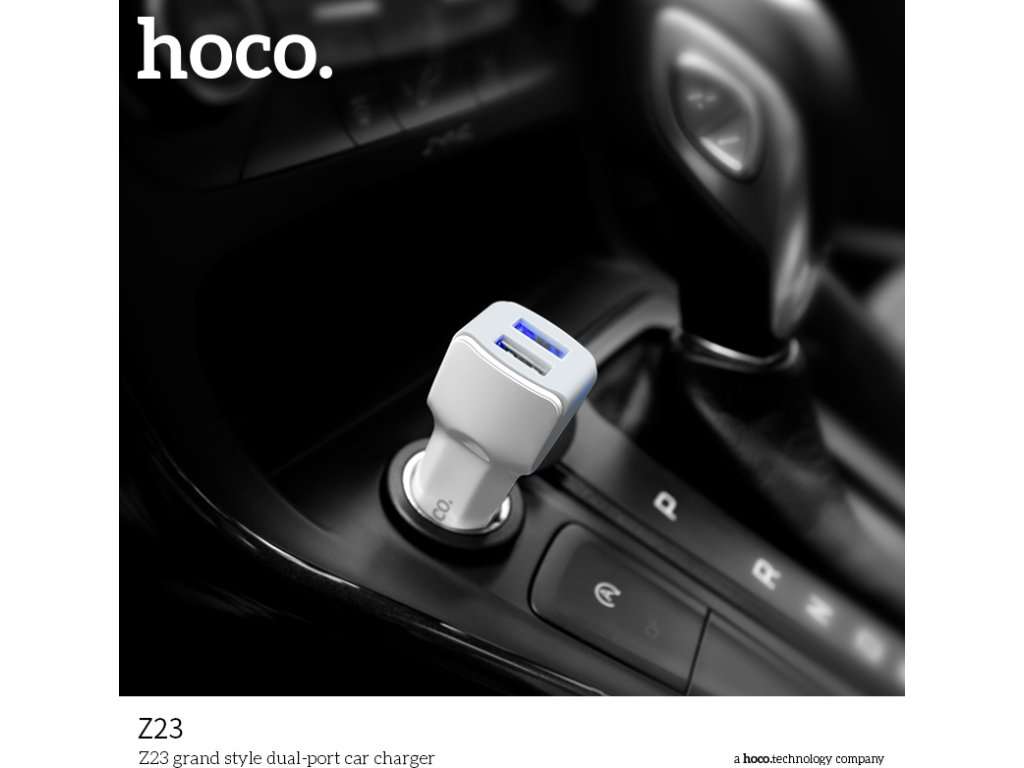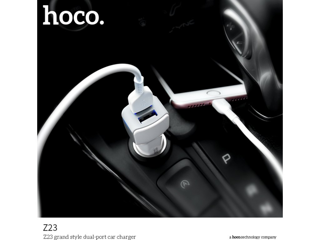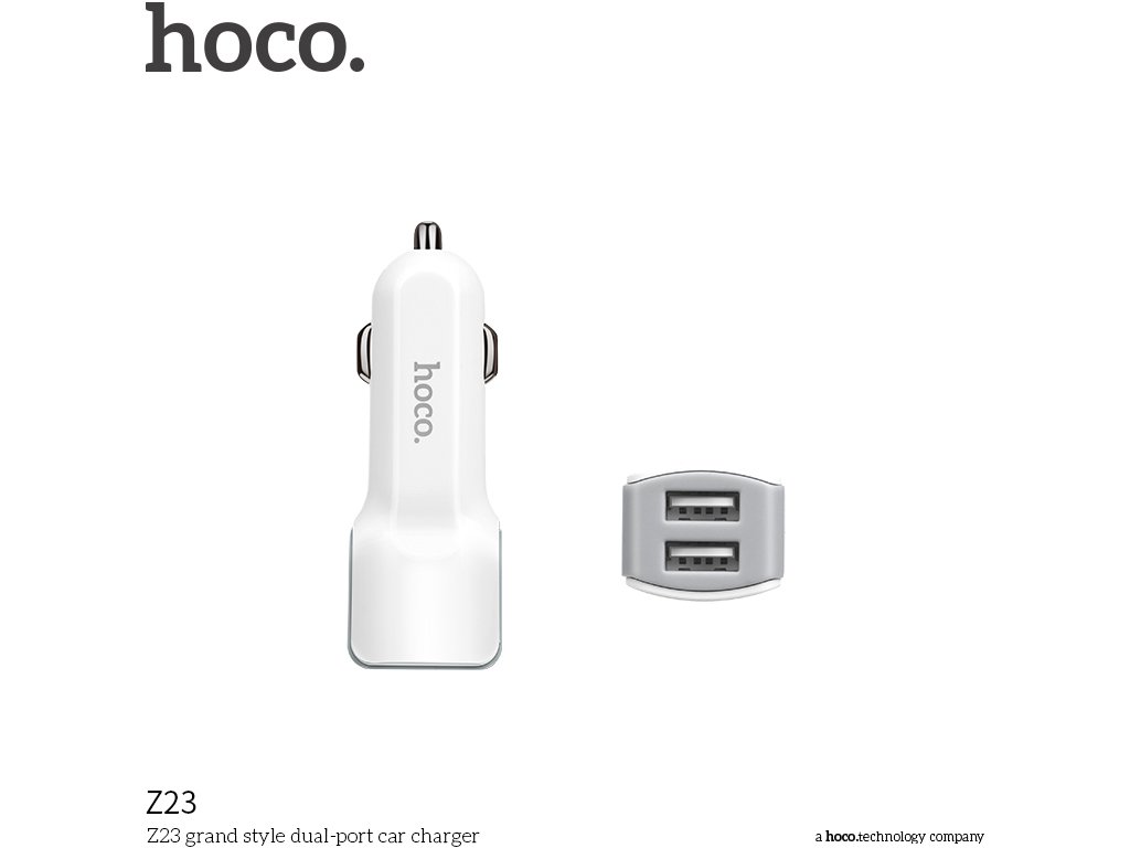 Autonabíječka na zařízení s iOS a Androidem s dvěma USB porty, firmy HOCO, bílé barvy. S pomocí tehle nabíječky se vám už nestane, že se vaše zařízení po cestě autem vybije. Vyrobena z kvalitních materiálů.