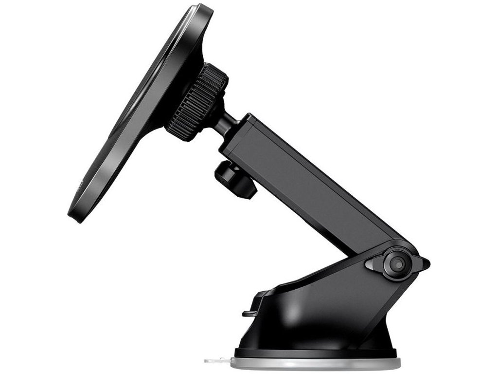 Držák na palubní desku upevníte pomocí přísavky, která je také v balení. Při přesunutí na jiné místo pak stačí jen přísavku odlepit, očistit a přilepit jí třeba i na čelní sklo vozidla. Rameno pak lze naklánět a vše zaaretovat malou páčkou.