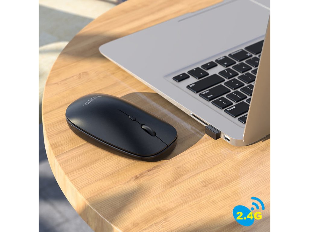 Bezdrátová myš Hoco GM15 je levným a praktickým doplňkem k vašemu počítači. Napájení je zajištěno jednou AA baterií a uvnitř se nachází přijímač signálu, který zapojíte do USB počítače. Druhou možností připojení je Bluetooth, které využijete například u Maců. Nízká váha, odolný ABS plast a DPI až 1600 jsou dalšími výhodami, které oceníte.