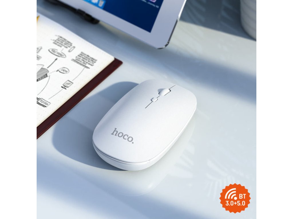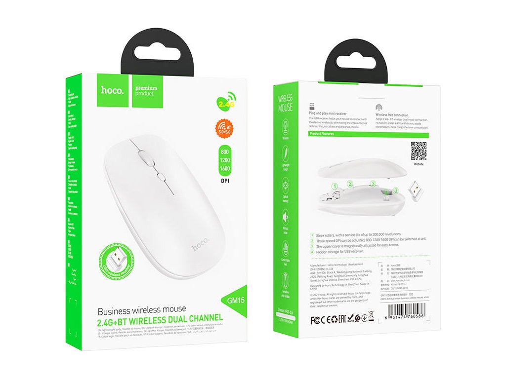 Bezdrátová myš Hoco GM15 je levným a praktickým doplňkem k vašemu počítači. Napájení je zajištěno jednou AA baterií a uvnitř se nachází přijímač signálu, který zapojíte do USB počítače. Druhou možností připojení je Bluetooth, které využijete například u Maců. Nízká váha, odolný ABS plast a DPI až 1600 jsou dalšími výhodami, které oceníte.