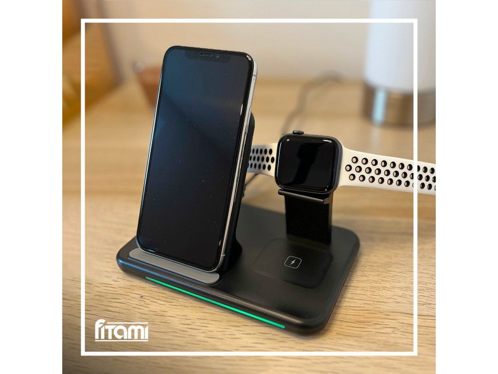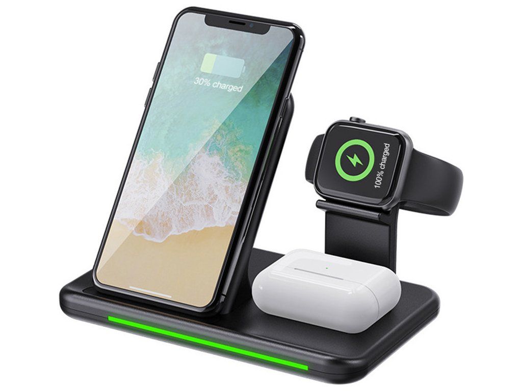 Bezdrátová nabíječka 3v1 - Černá