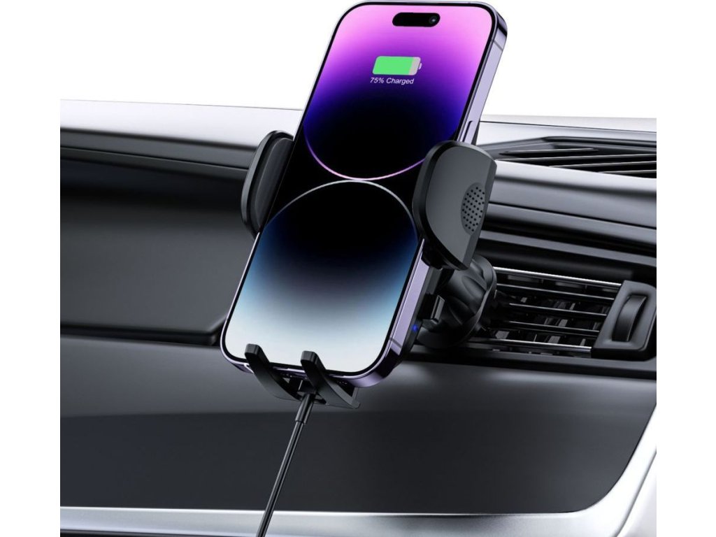 Bezdrátová rychlá nabíječka a držák do auta pro iPhone Tech-Protect CM15W-V1 v sobě spojuje hned několik výhod. Jedná se o pevný držák na palubní desku nebo do ventilační mřížky vozidla a bezdrátovou nabíječku.