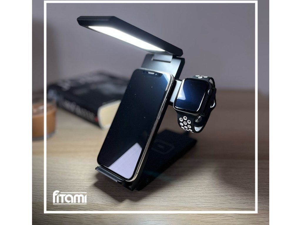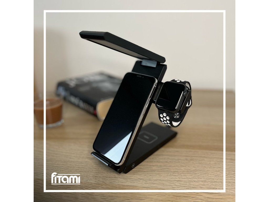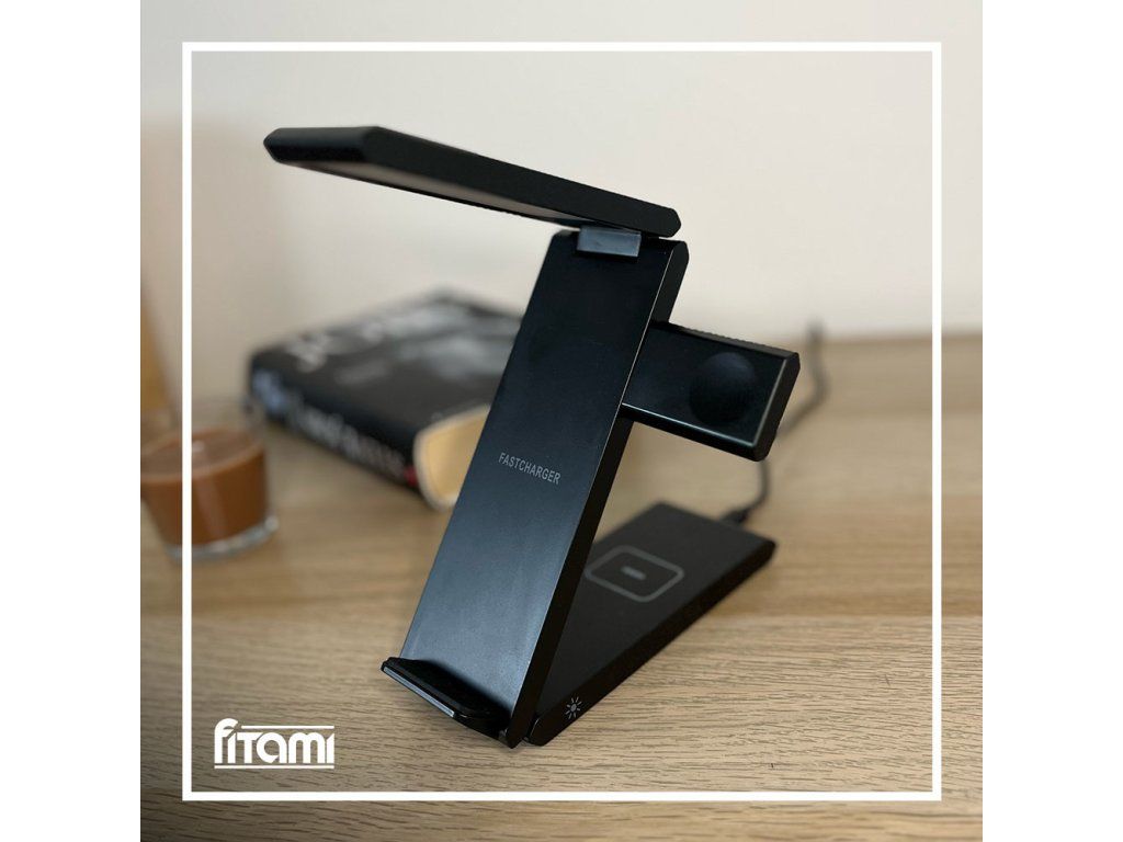 Bezdrátová nabíječka s LED lampičkou 3v1 - Černá