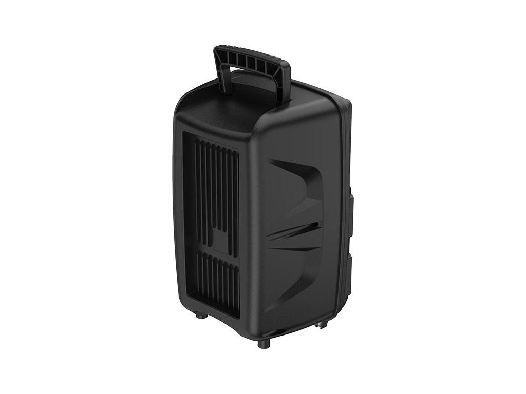 Bezdrátový reproduktor podporuje Bluetooth funkci ve verzi 5.0 a má tak stabilní a rychlé připojení. Navíc dokáže chytat signál až 10 metrů od přehrávače. Tím může být váš telefon, tablet, počítač nebo i moderní televize. Velký přenosný reproduktor váží 1,9 kilogramů a není to tedy žádný prcek. Má v sobě zabudované dva 8palcové měniče, které dokážou hrát velmi hlasitě výkonem 2 x 15 W. I když je poměrně velký a těžký, díky hornímu úchytu ho lehce můžete přenášet. Jeho tvar, který připomíná cestovní kufr ho k tomu vlastně i předurčuje. Na přední straně jsou pak ovládací tlačítka, takže můžete hudbu pouštět nebo zesilovat rovnou z něj. Mezi nimi také najdete pěknou řádku konektorů.