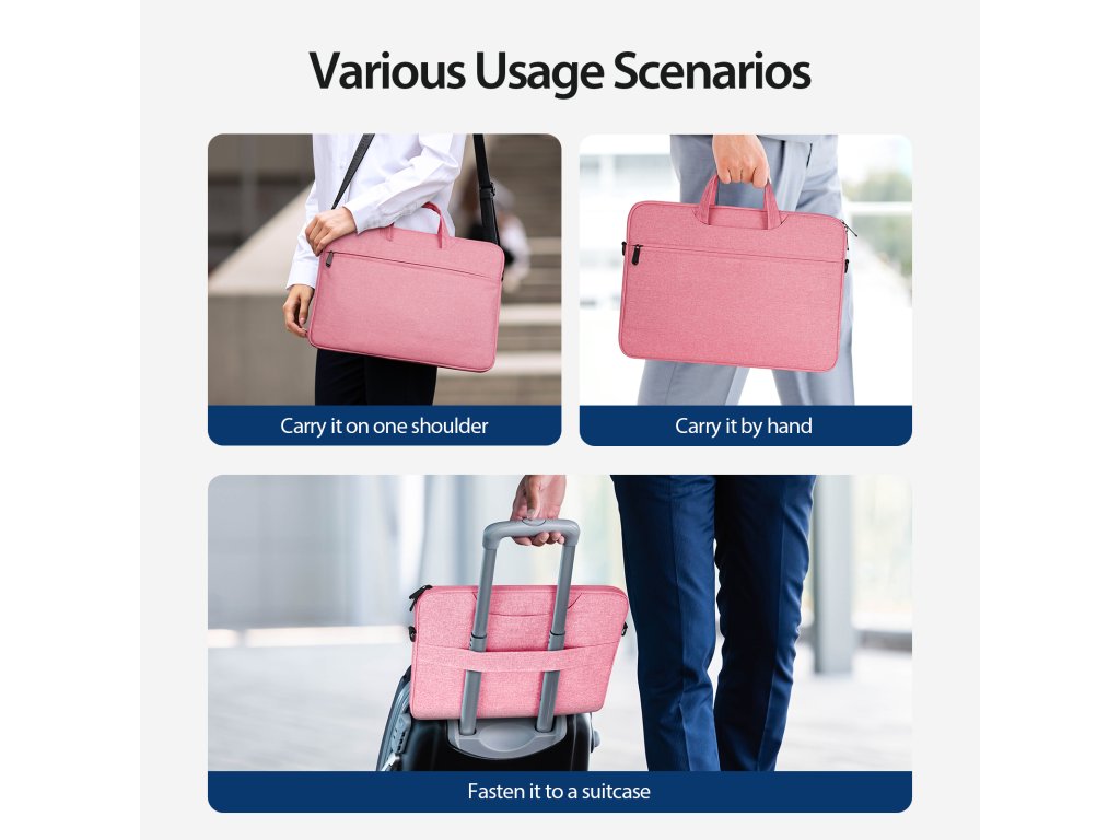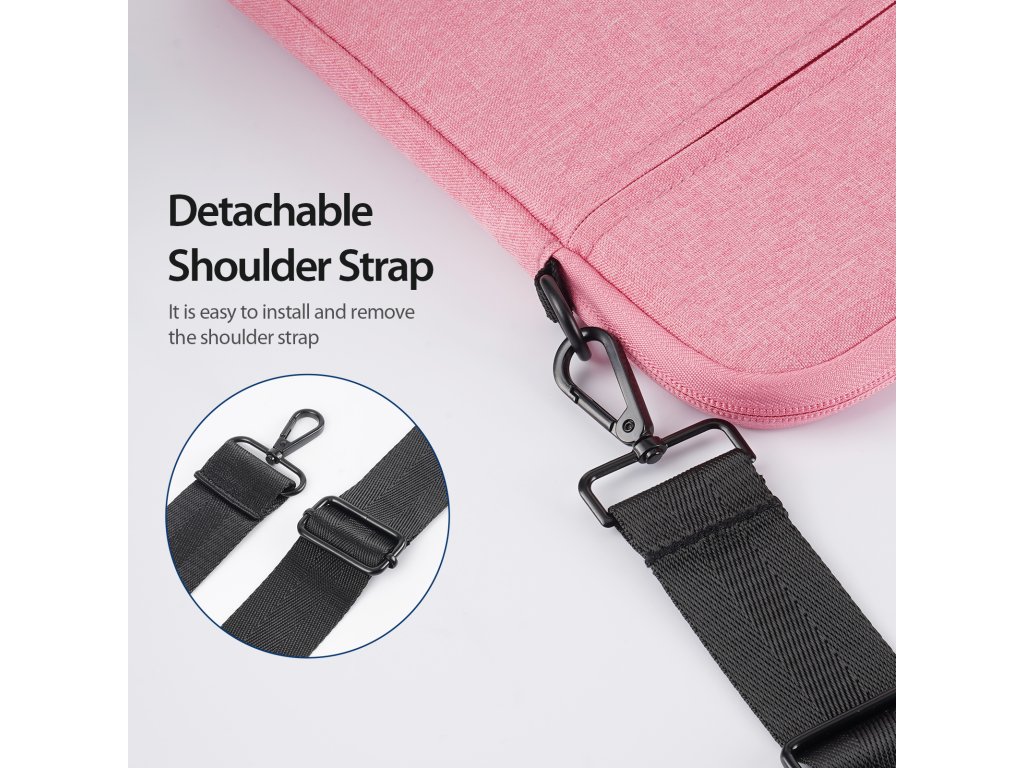 Taška pro notebook má na vrchu ucha pro pohodlné držení a přenášení. To se hodí pro menší cesty a krátké trasy. U delšího přesunu oceníte dlouhý popruh opatřený měkkou ploškou, kterou si nasadíte na rameno. Takto lze přenášet počítač i několik hodin denně.