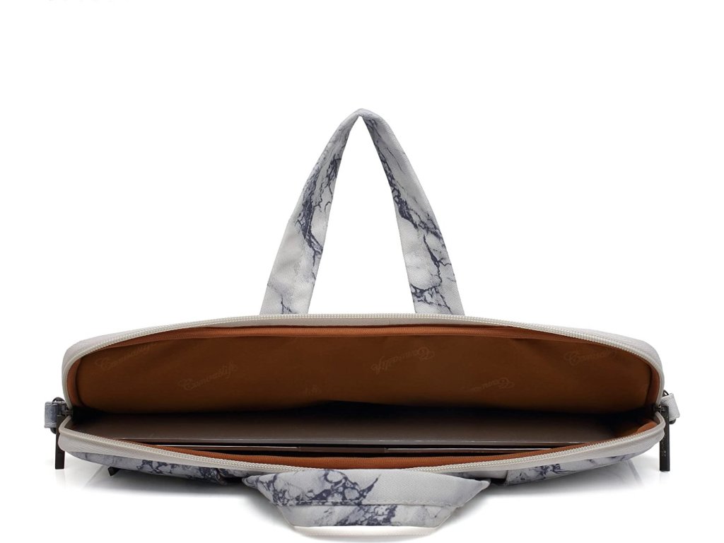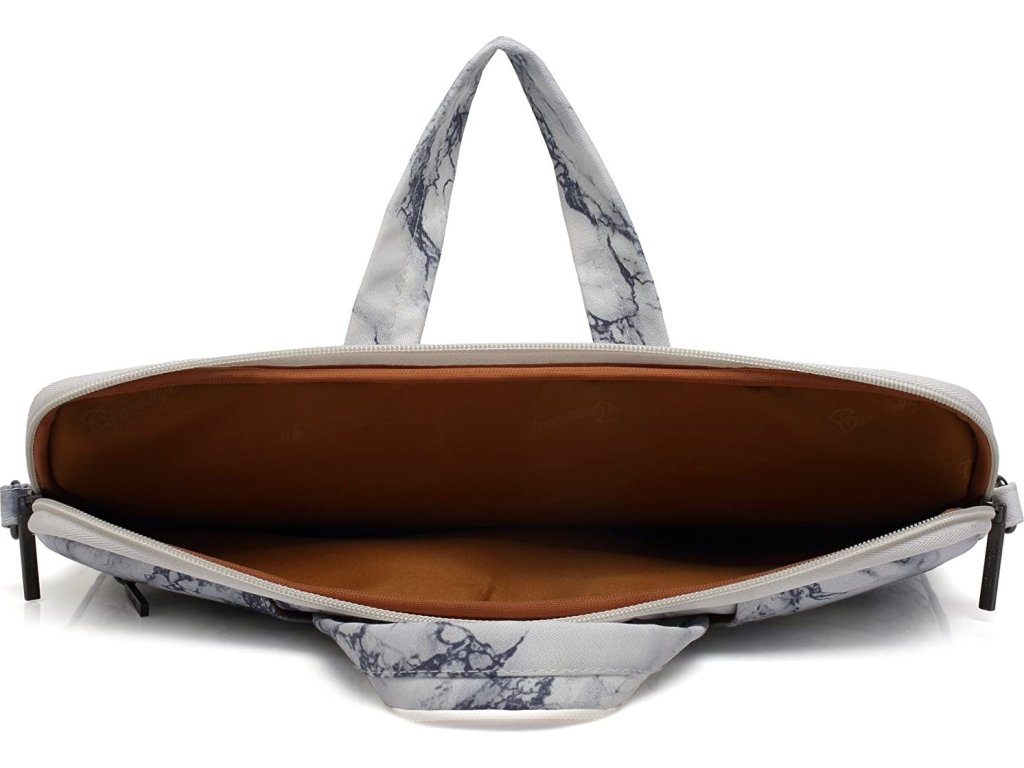 Taška na MacBook nabízí šikovné ucho, za které ji můžete vzít a nosit všude s sebou. Nemusíte si tak dávat notebook pod rameno. A kdybyste měli plné ruce, uvnitř tašky najdete složený popruh. Ten stačí zaháknout za kovová oka na krajích tašky a můžete si ji hodit přes rameno.