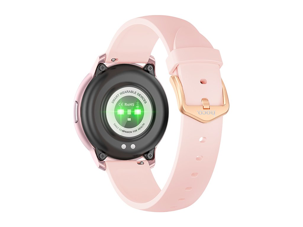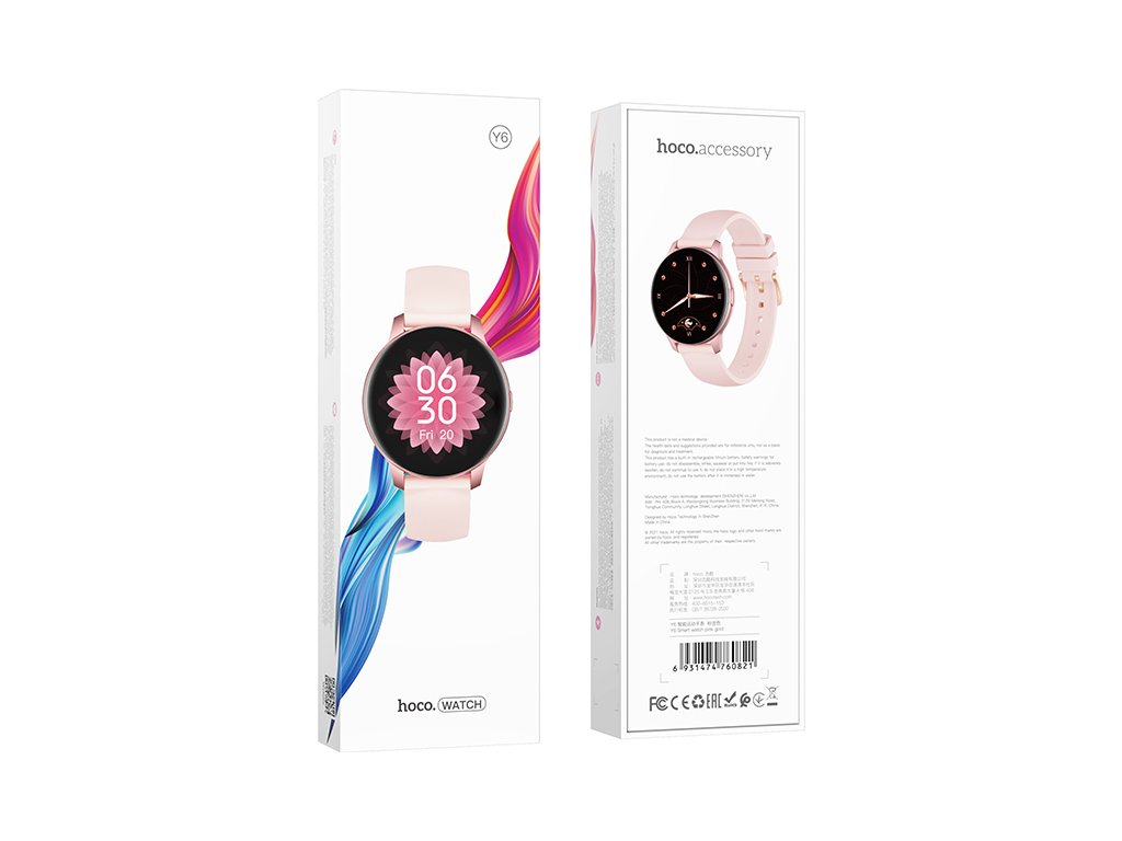 Chytré hodinky Hoco Y6 Smart Watch se budou převážně hodit na dámská zápěstí. Růžový pásek se zlatou přezkou je velmi elegantní a hodí se nejen do společnosti, ale i na sport. Podporují spárování s Android telefony a Apple iOS skrz Bluetooth. Na displeji hodinek se pak budou zobrazovat příchozí notifikace.