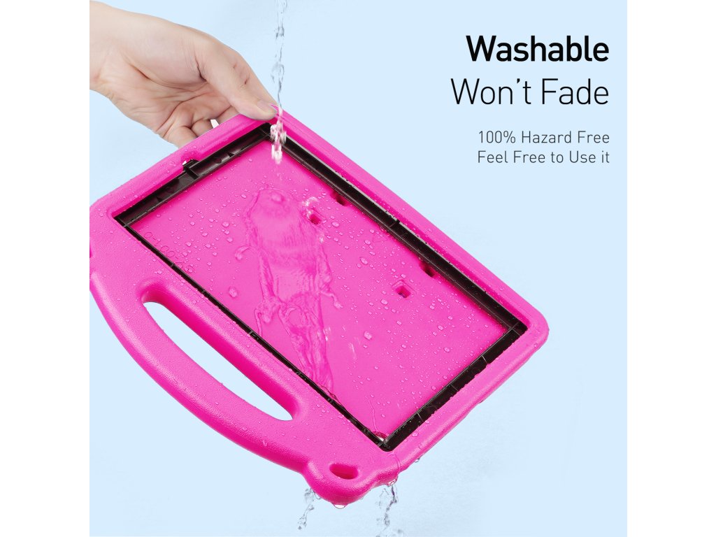 Obal na iPad ochrání zadní část tabletu. Pevný plastový kryt je vyroben z EVA materiálu, který chrání před poškrábáním i pády. Dostatečně robustní konstrukce je přítomna i na bocích a přispívá k lepšímu držení zařízení. V horní části je dostatečně velký průřez na fotoaparát a lze tak používat kryt pro iPad při všech činnostech. Vrchní strana pak disponuje držátkem, díky kterému iPad můžete přenášet.