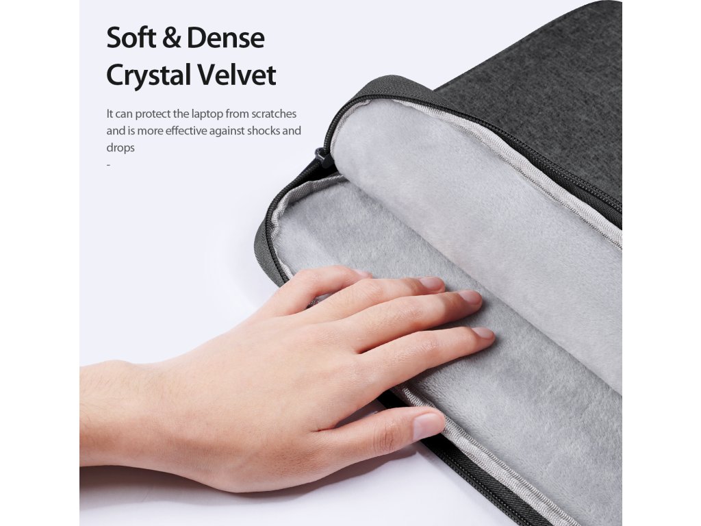 Taška na notebook je uvnitř velmi jemná a látka je vyrobena tak, aby počítač nepoškrábala a zároveň tlumila případné nárazy. Zvenku je zase využita odolná tkanina. Ta vydrží i silný déšť a veškeré příslušenství uvnitř zůstane v bezpečí.