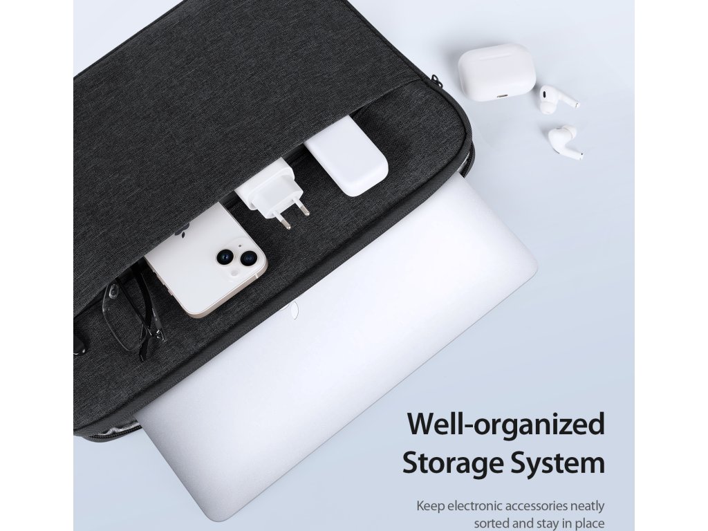 Díky přesně padnoucím rozměrům se pouzdro dokonale přizpůsobí vašemu notebooku, čímž minimalizuje riziko pohybu zařízení uvnitř. Tenký a lehký design usnadňuje přenášení – pouzdro můžete pohodlně držet v ruce, nebo jej snadno uložit do batohu či tašky.