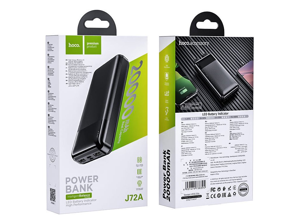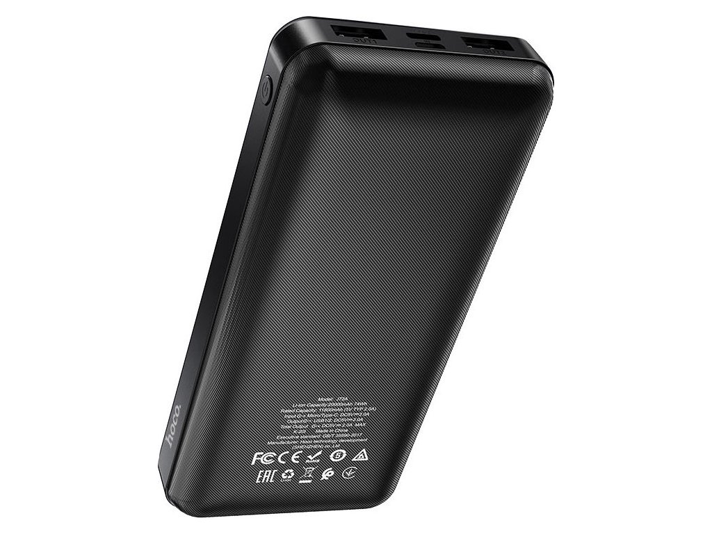 Powerbanka na iPhone a jiné telefony nebo tablety Hoco J72A je zpracována z odolných materiálů. ABS plast zajišťuje dostatečnou pevnost a látky zpomalující hoření zase bezpečí. Na těle baterie je praktické šrafování a zdrsněný povrch tak neklouže v ruce. Vzhledem ke své kapacitě není externí baterie příliš objemná a tloušťka 28 mm vás nebude omezovat.