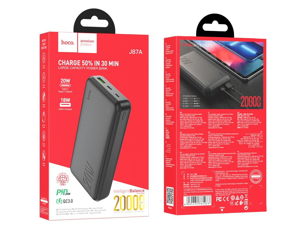Externí baterie / powerbanka - HOCO, J87A Tacker PD20W+QC3.0 20000mAh Black