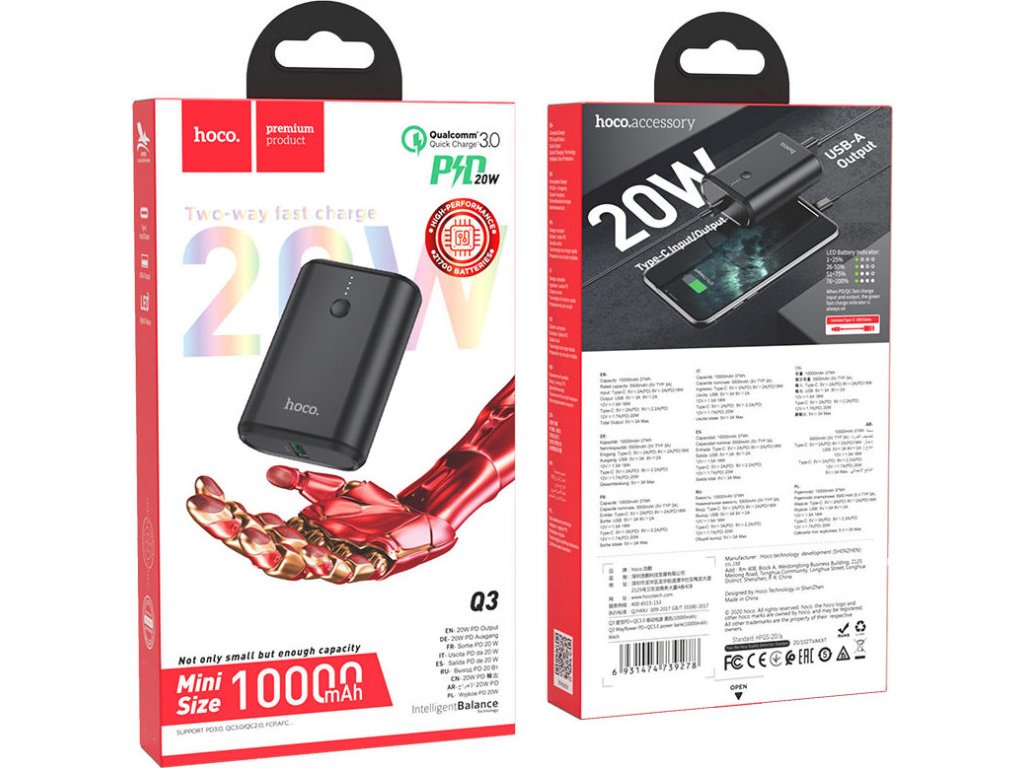 Externí baterie / powerbanka - HOCO, Q3 Mayflower PD20W+QC3.0 10000mAh Black