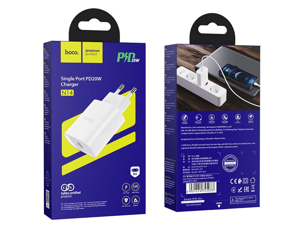 Rychlá USB nabíječka do sítě HOCO N14 podporuje velmi rychlé nabíjení a je univerzálním adaptérem pro všechny moderní telefony a tablety. Díky Power Delivery dobijete rychle Apple produkty.