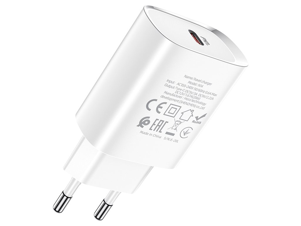 Hoco nabíjecí adaptér USB-C PD 20W (EU) Smart Charging bílá