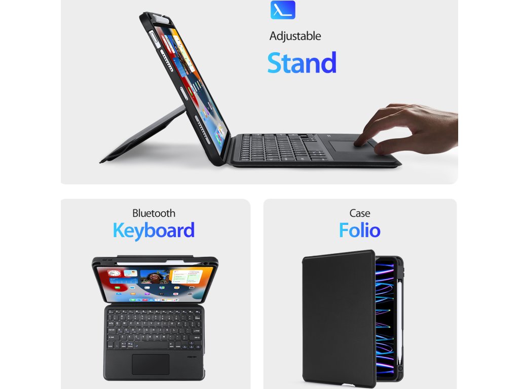 Klávesnice pro iPad Duxducis DK je multifunkčním zařízením, které zastane hned několik funkcí. Slouží primárně jako klávesnice, ale perfektně splní svůj účel i jako ochranné pouzdro, držák na Apple Pencil, nebo stojánek pro iPad.