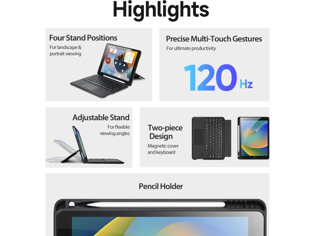 Klávesnice pro iPad Duxducis DK je multifunkčním zařízením, které zastane hned několik funkcí. Slouží primárně jako klávesnice, ale perfektně splní svůj účel i jako ochranné pouzdro, držák na Apple Pencil, nebo stojánek pro iPad.