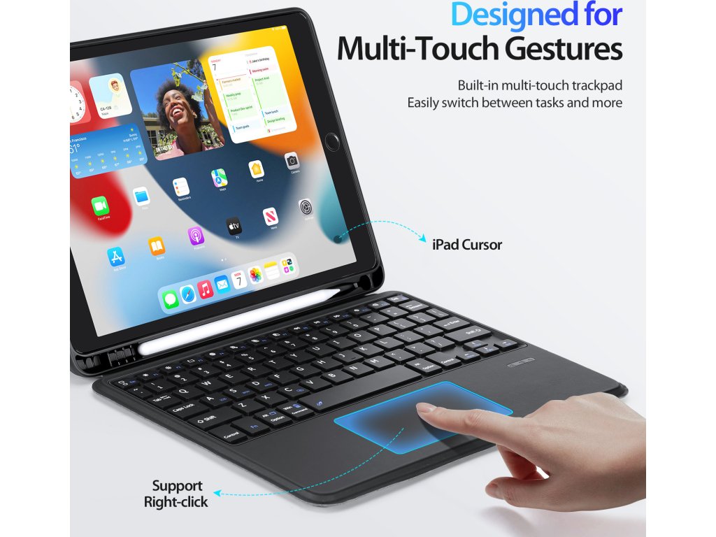 Trackpad pod klávesnicí podporuje vícedotyková gesta, takže vám půjde práce pěkně od ruky, podobně jako na MacBooku. A aby bylo používání ještě pohodlnější, jednotlivé klávesy jsou vybavené nůžkovým mechanismem se zdvihem kláves 1,5 mm pro tiché a citlivé psaní.