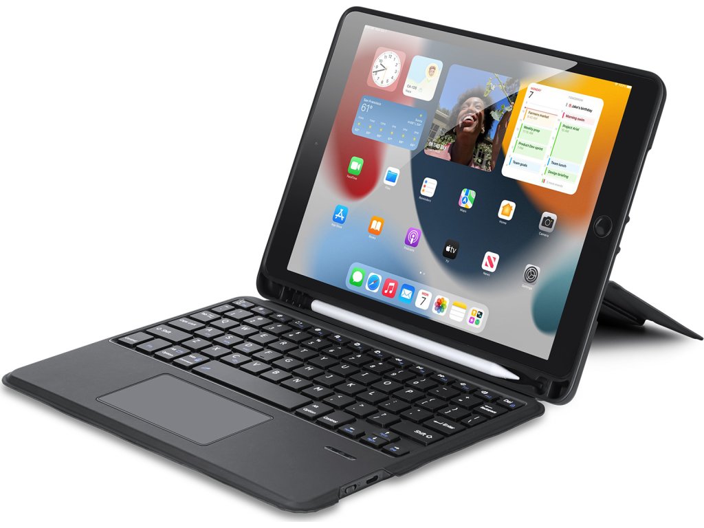 Ochranné pouzdro na iPad. I tak můžete označit tuto klávesnici, protože se nasadí na záda zařízení, které bude krýt odolný ABS plast a z vnější strany umělá kůže. Displej ochrání samotná klávesnice. Zajímavou vychytávkou je možnost magnetického odpojení. Lehce tak rozpojíte klávesnici s tabletem, který ale může zůstat v krytu.
