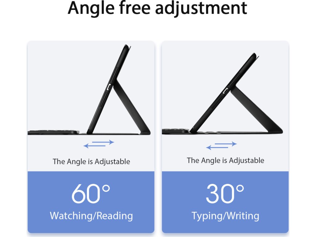 Bezdrátová klávesnice na iPad se spáruje s tabletem pomocí Bluetooth a každé propojení trvá jen pár sekund, nebudete tak na nic čekat. Integrovaná baterie udrží klávesnici kolem 30 dní v nepřetržitém chodu. Nabití pak probíhá přes USB-C kabel, který dostanete s klávesnicí v balení.