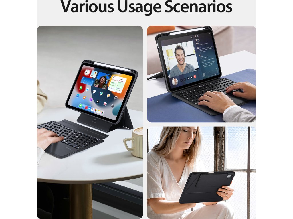 Klávesnice pro iPad Duxducis DK je multifunkčním zařízením, které zastane hned několik funkcí. Slouží primárně jako klávesnice, ale perfektně splní svůj účel i jako ochranné pouzdro, držák na Apple Pencil, nebo stojánek pro iPad.