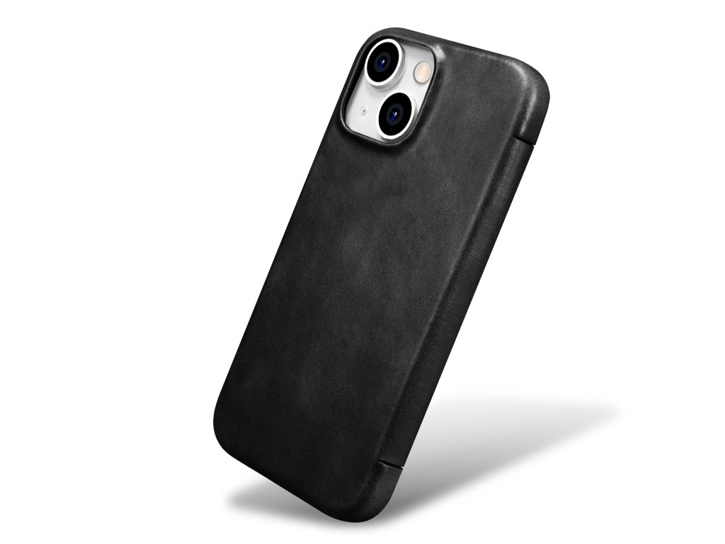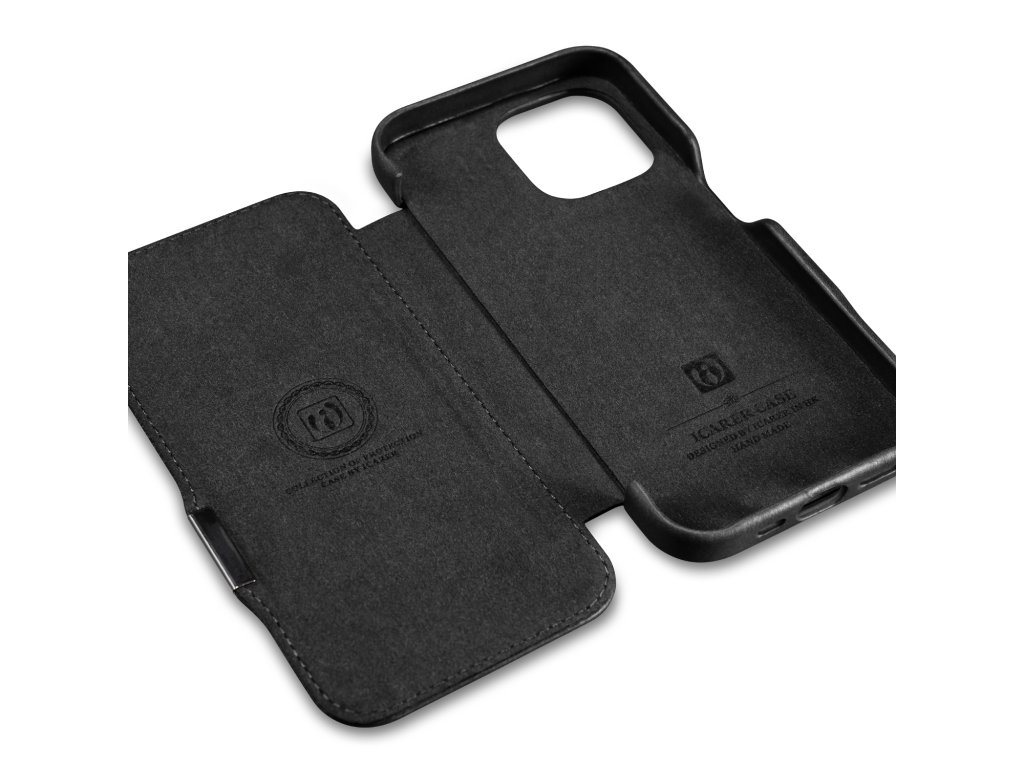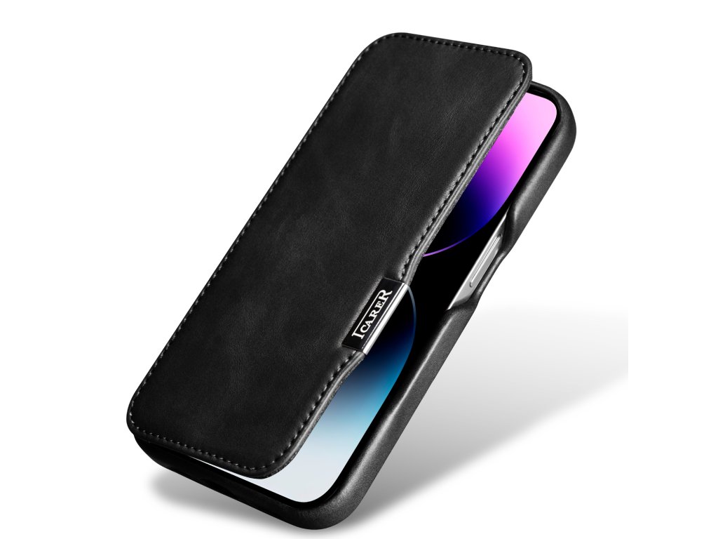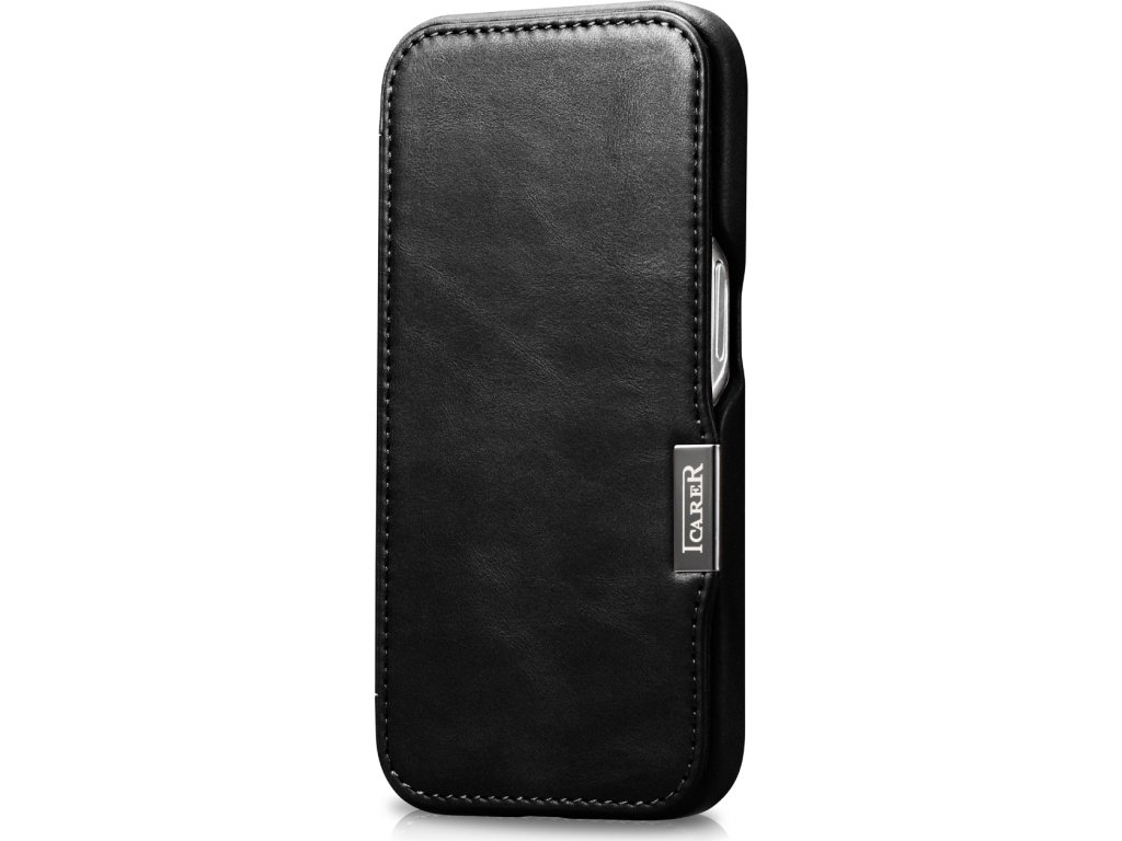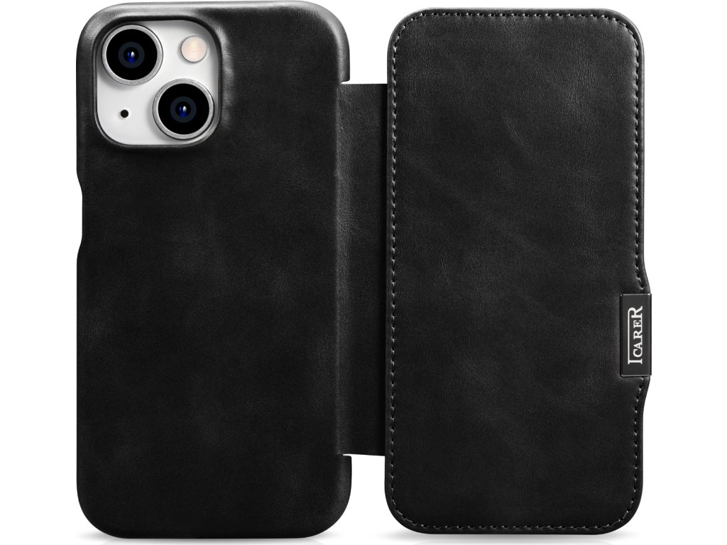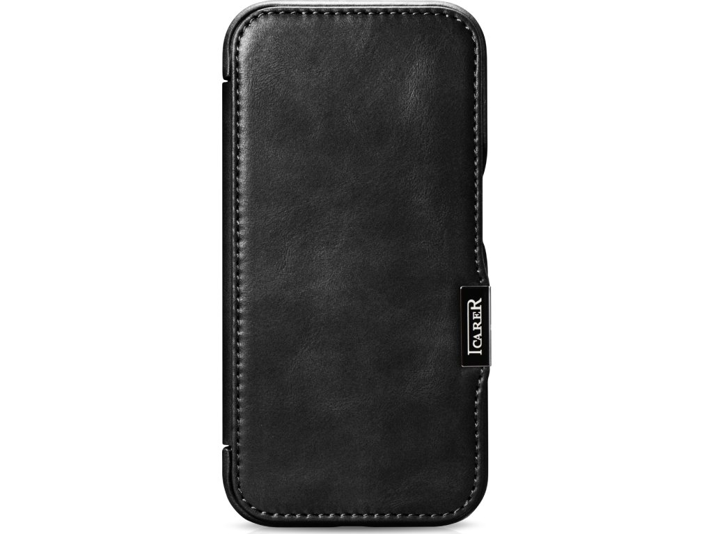 Knížkové pouzdro na iPhone 15 - iCarer, Oil Wax Real Leather MagSafe Black WMI16250503-BK