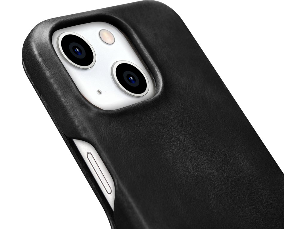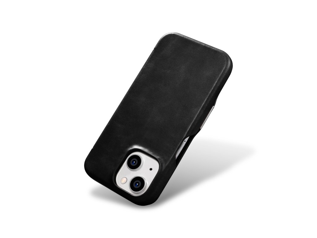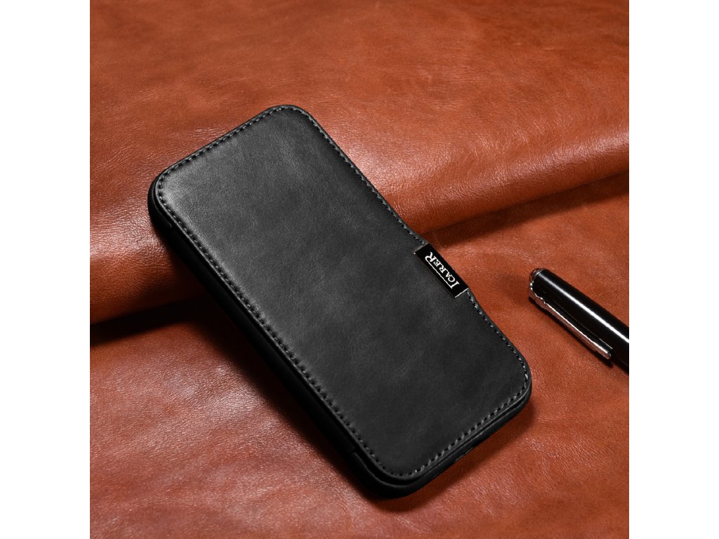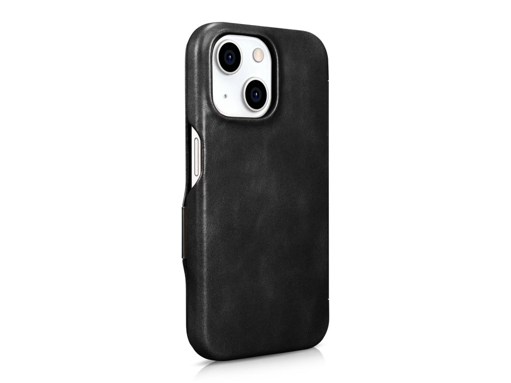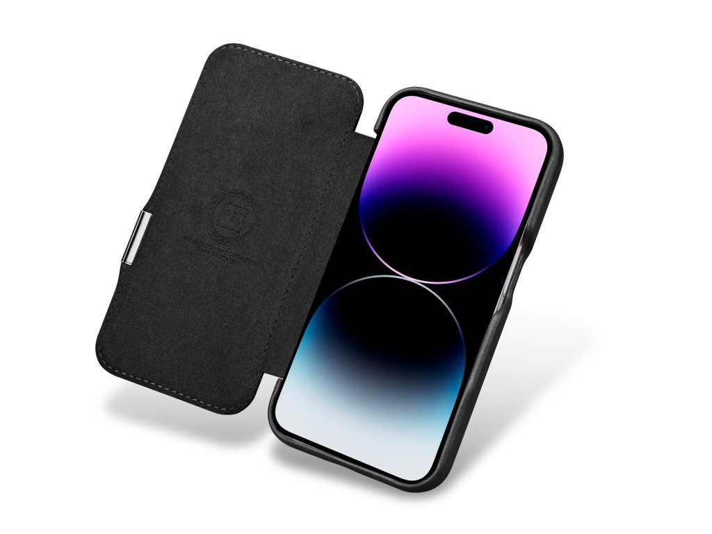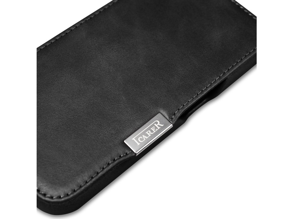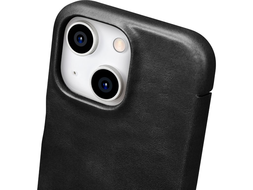 Knížkové pouzdro na iPhone 15 - iCarer, Oil Wax Real Leather MagSafe Black WMI16250503-BK