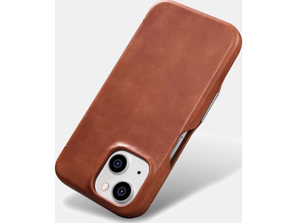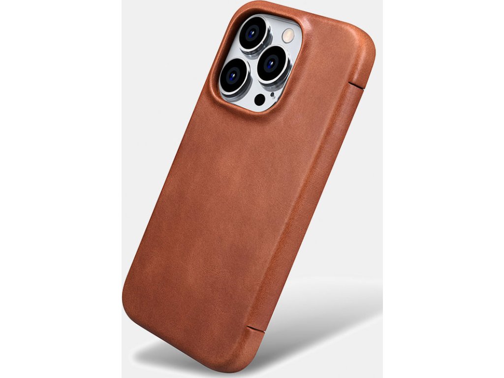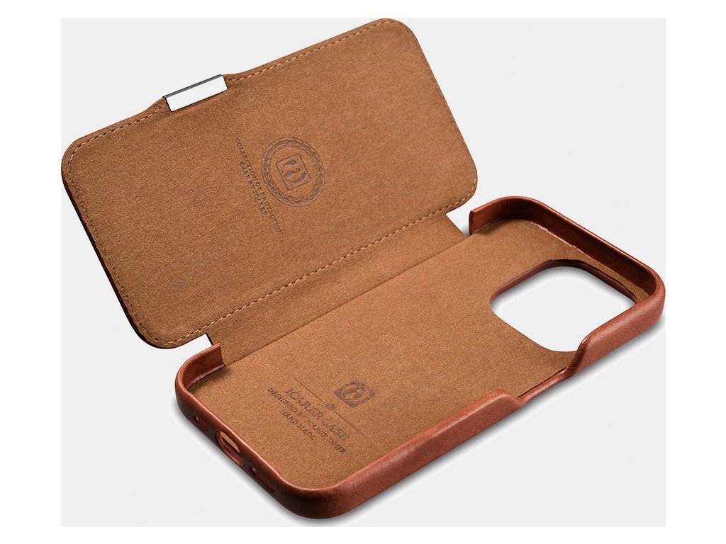 Knížkové pouzdro na iPhone 15 - iCarer, Oil Wax Real Leather MagSafe Brown