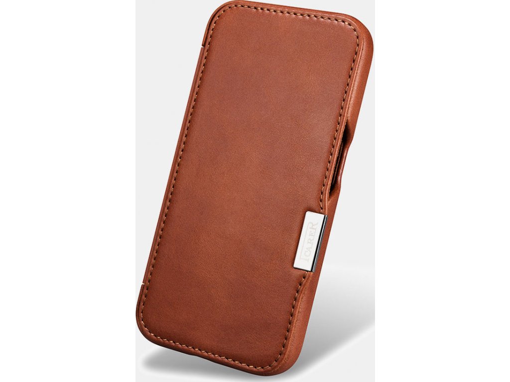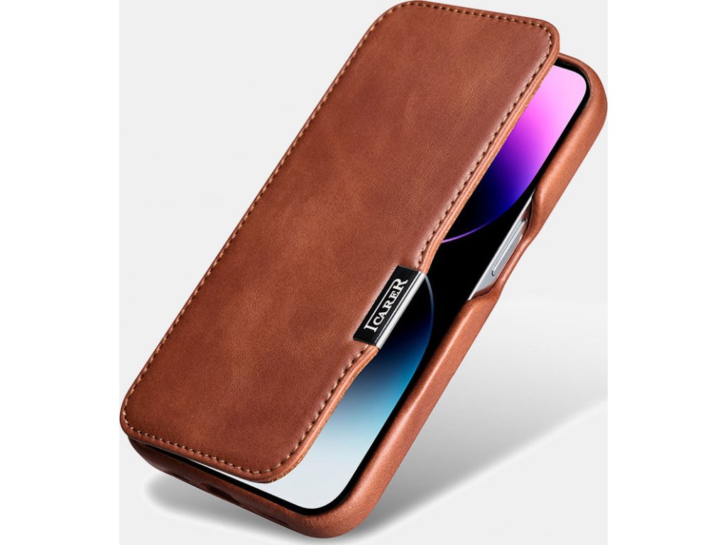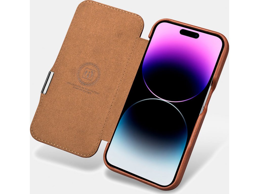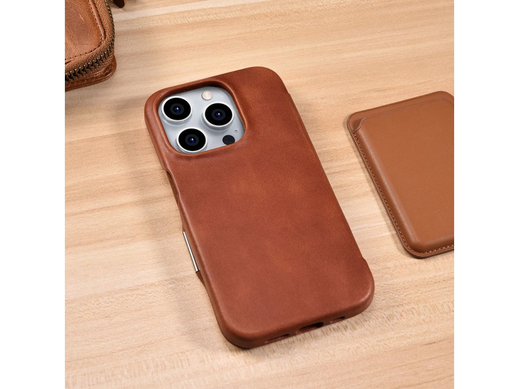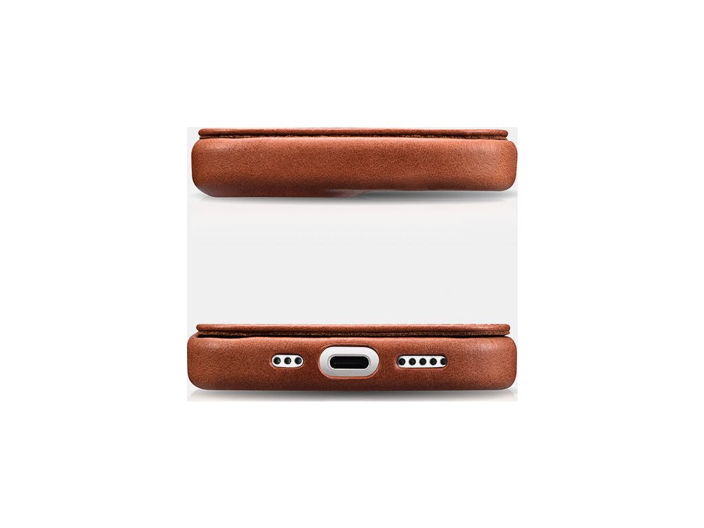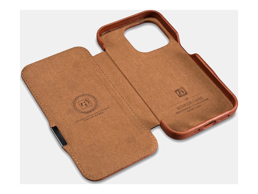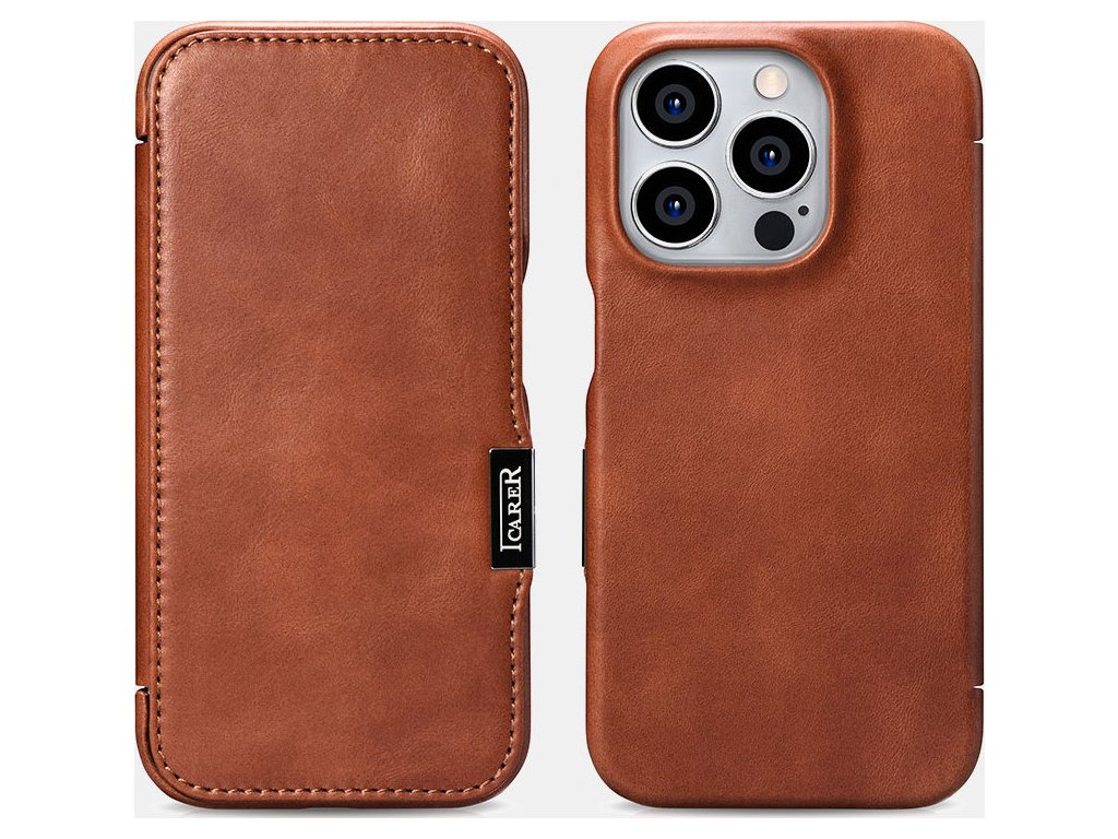 Knížkové pouzdro na iPhone 15 Pro - iCarer, Oil Wax Real Leather MagSafe Brown