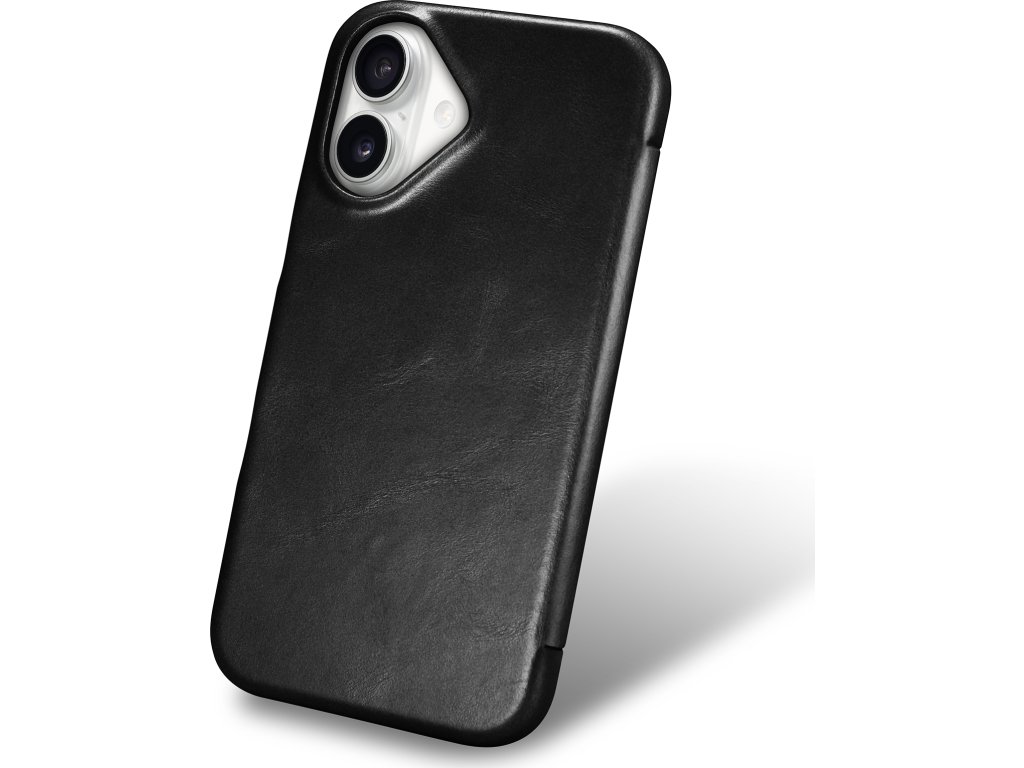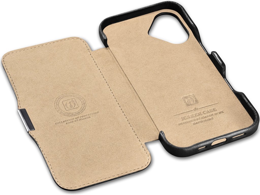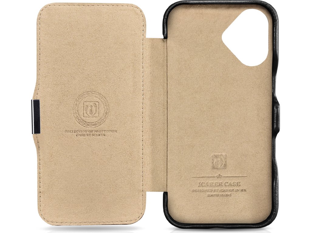 Knížkové pouzdro na iPhone 16 - iCarer, Oil Wax Real Leather MagSafe Black