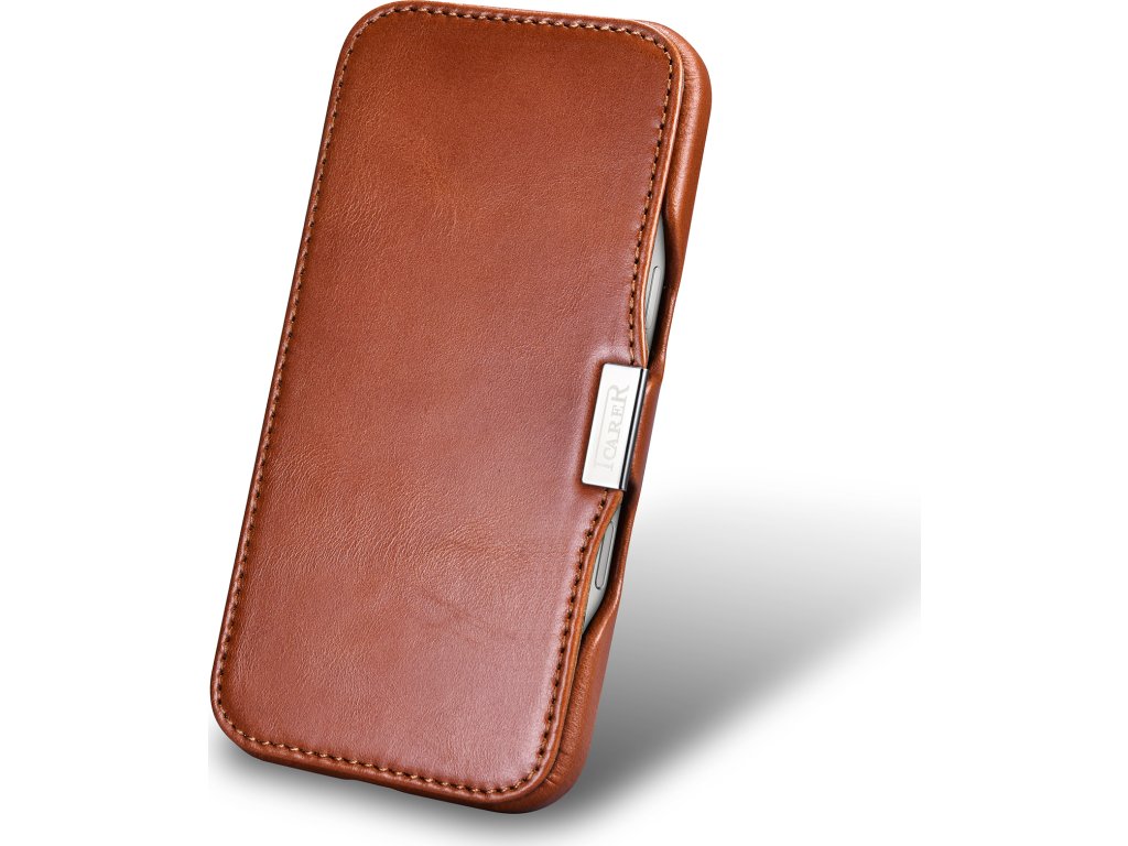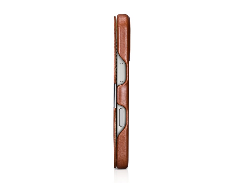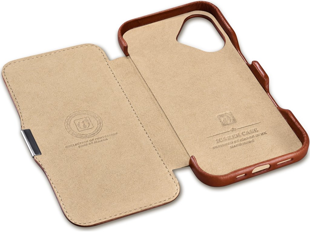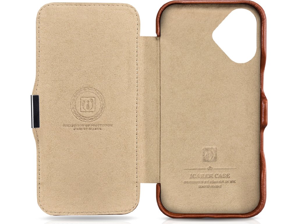Knížkové pouzdro na iPhone 16 - iCarer, Oil Wax Real Leather MagSafe Brown
