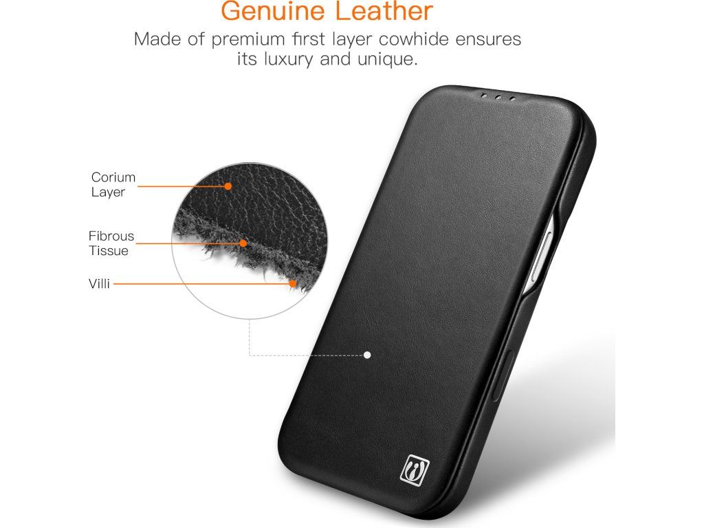 iCarer Oil Wax Real Leather Folio je přesně navržen danému modelu. Také je možné při nasazeném kryt nabíjet iPhone bezdrátově.