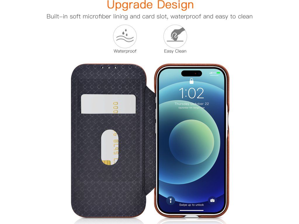 iCarer Oil Wax Real Leather Folio je přesně navržen danému modelu. Také je možné při nasazeném kryt nabíjet iPhone bezdrátově.