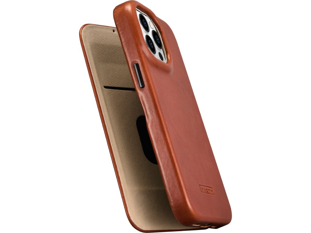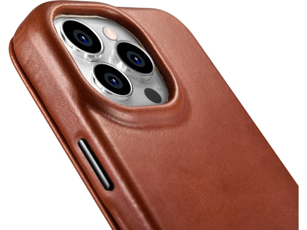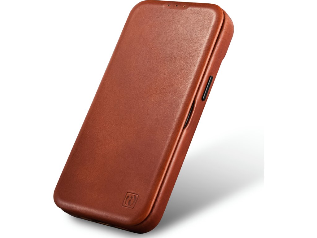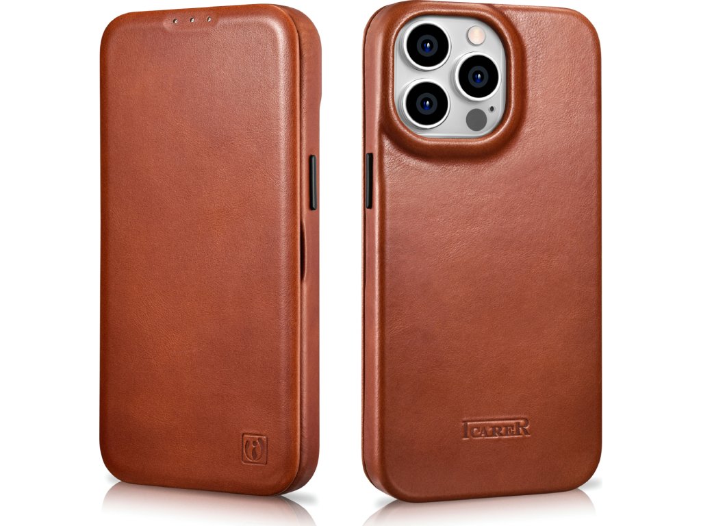Knížkové pouzdro pro iPhone 14 Pro - iCarer, Curved Edge MagSafe Brown