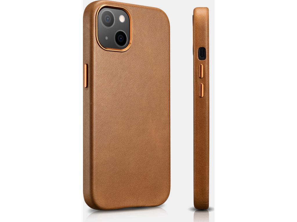 Kožený kryt na iPhone 13 mini - iCarer, Oil Wax with MagSafe Brown