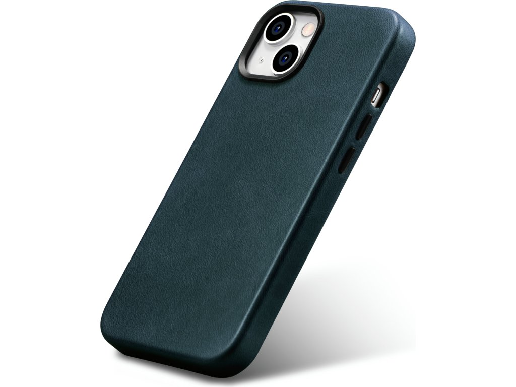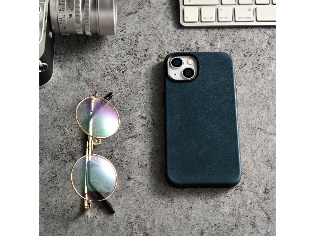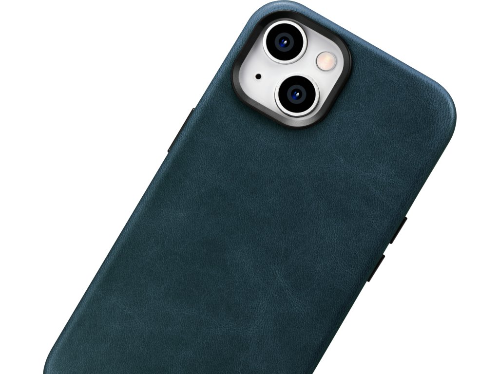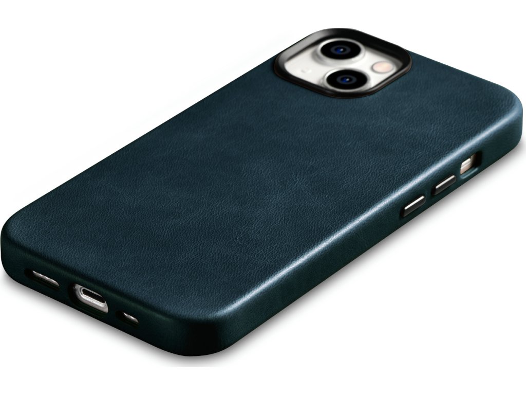 Kožený obal na iPhone 14 - iCarer, OilWax MagSafe Blue WMI14220701-BU
