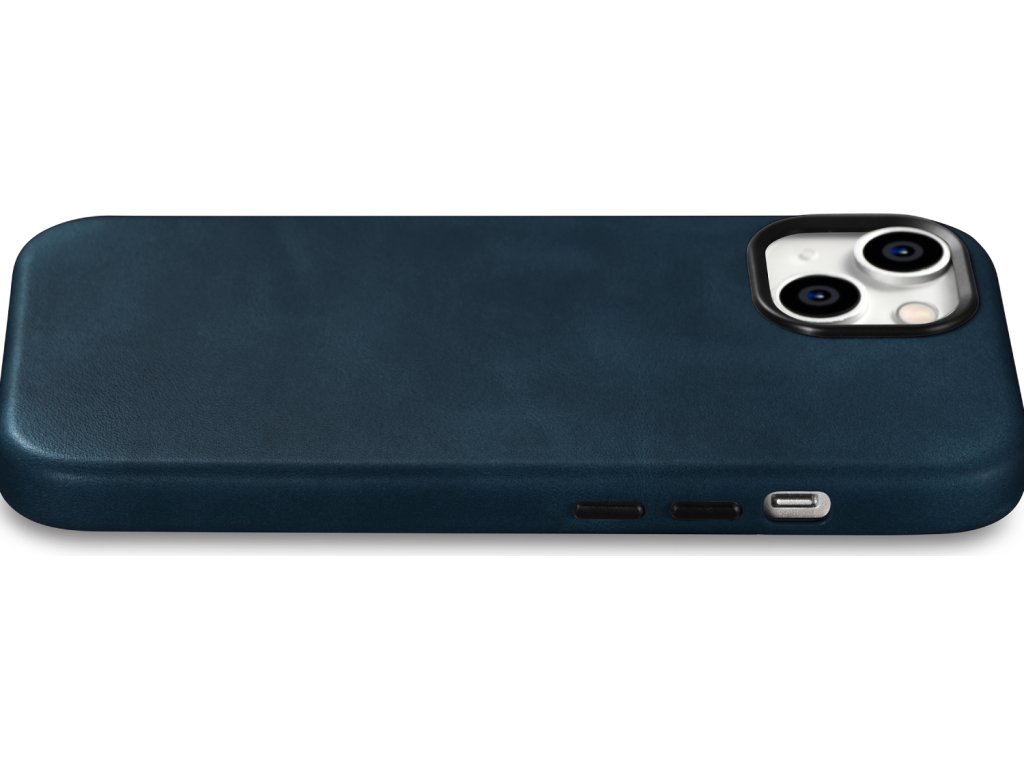 Kožený obal na iPhone 15 - iCarer, OilWax MagSafe Blue WMI15230601-Blue