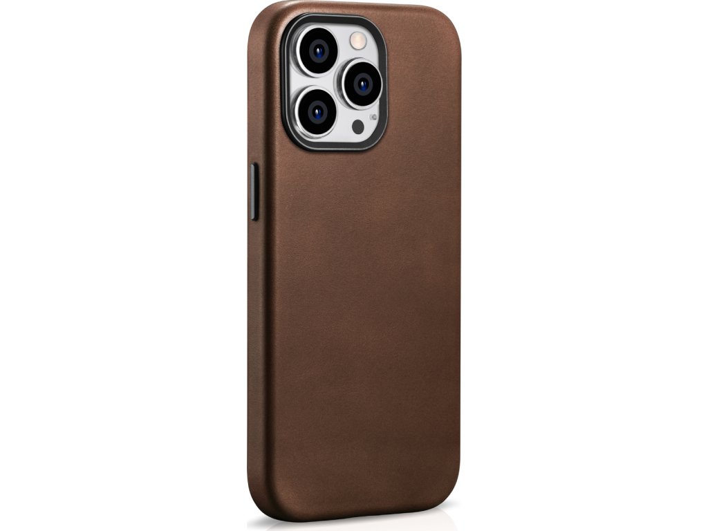 Kožený obal na iPhone 15 Pro MAX - iCarer, OilWax MagSafe Brown 11.01.WMI15230604-BN