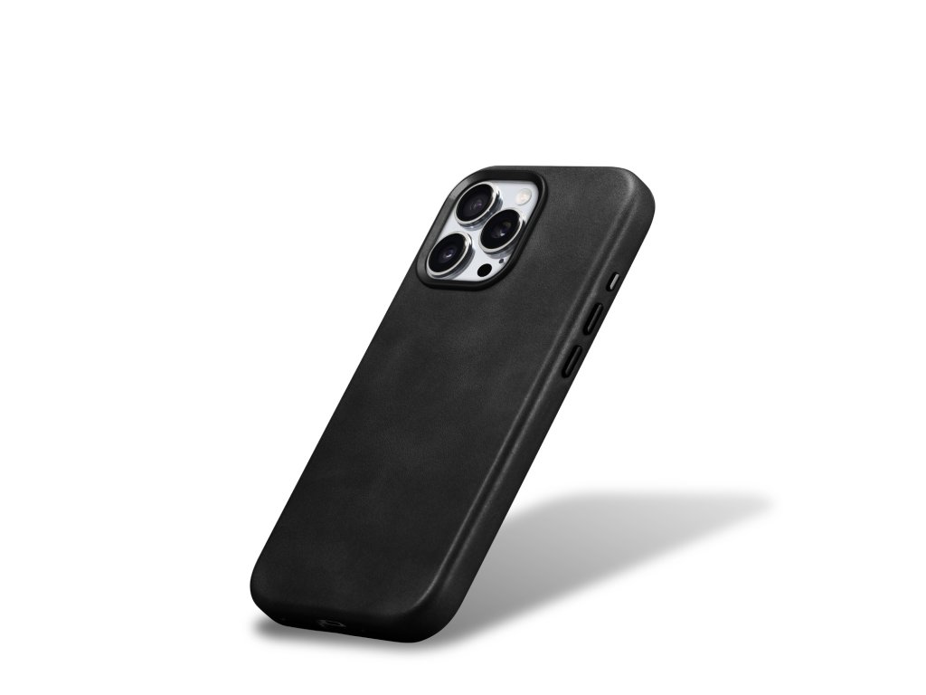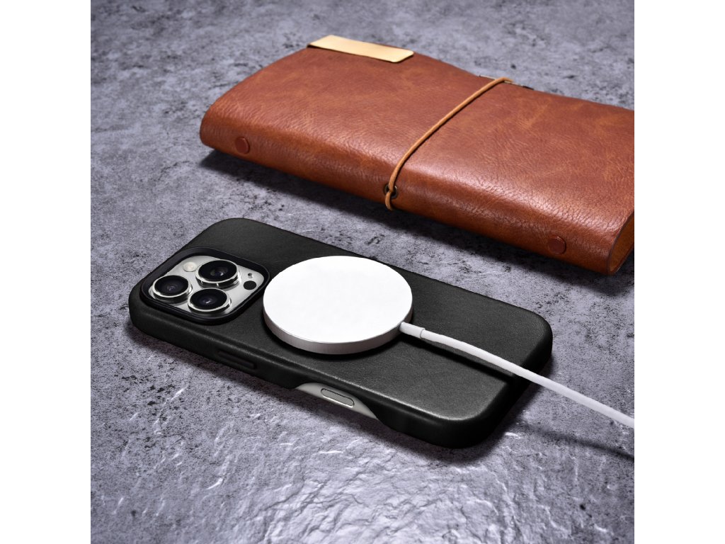 Kožený obal na iPhone 16 Pro MAX - iCarer, OilWax MagSafe Black 11.01.WMI16240704-BK