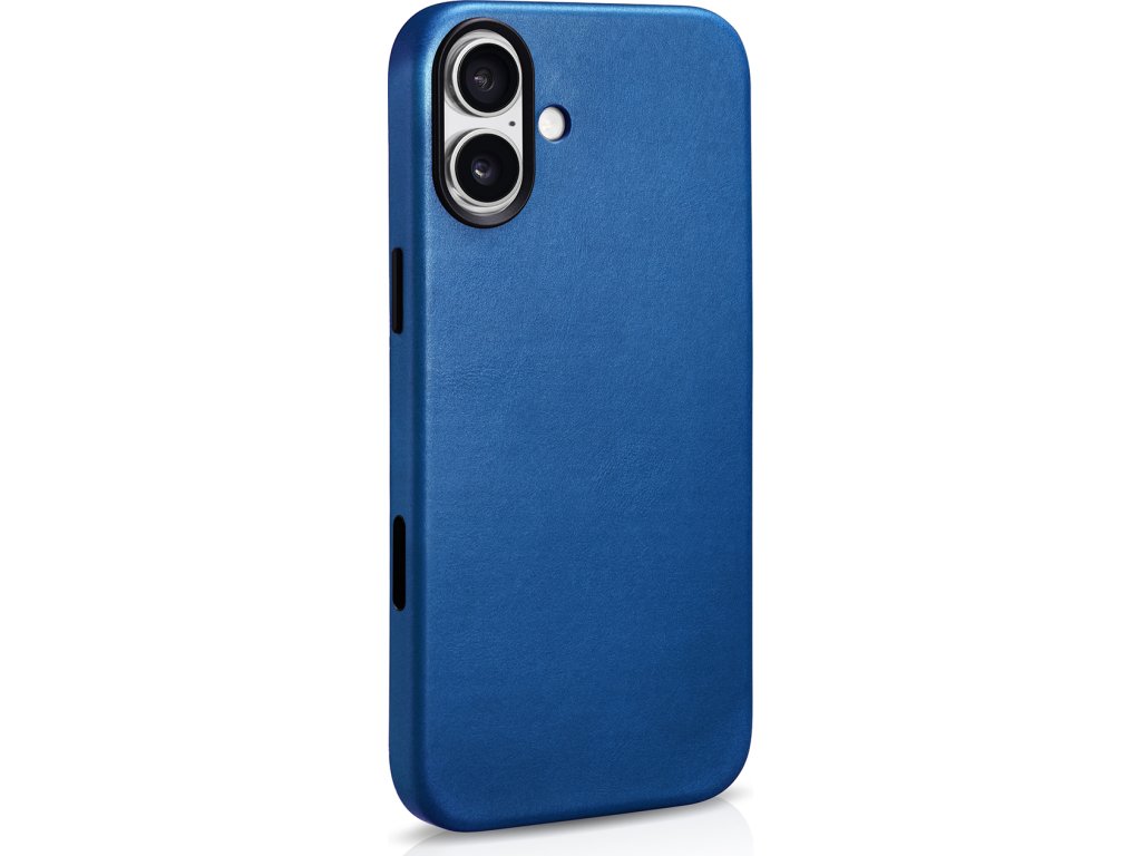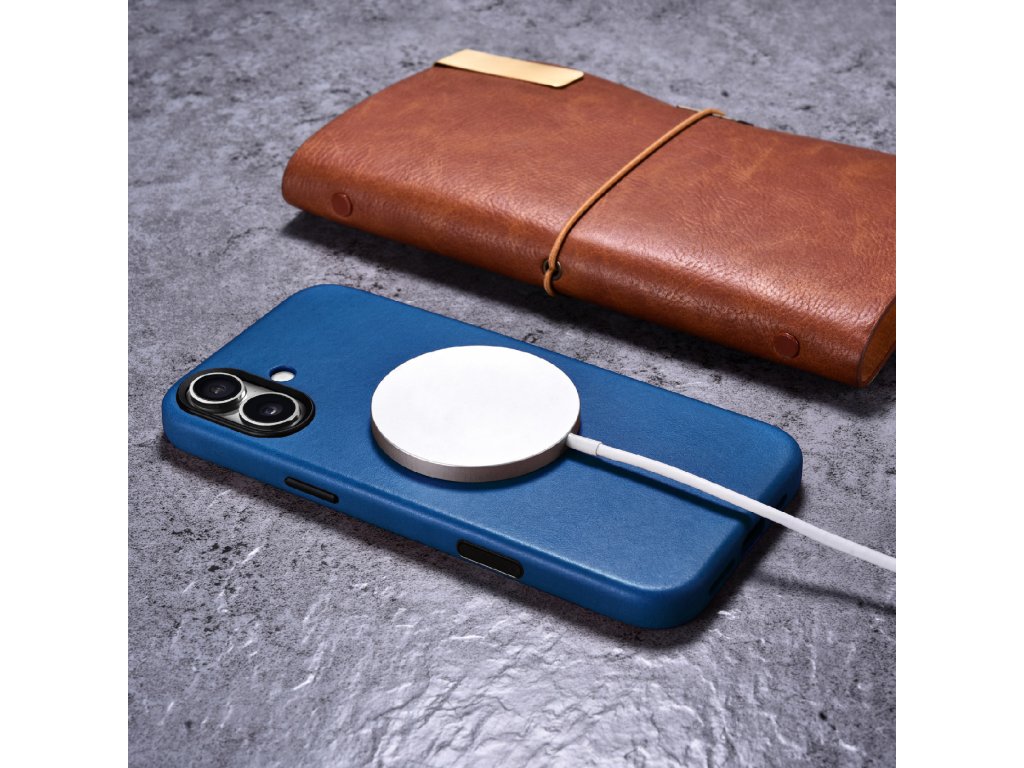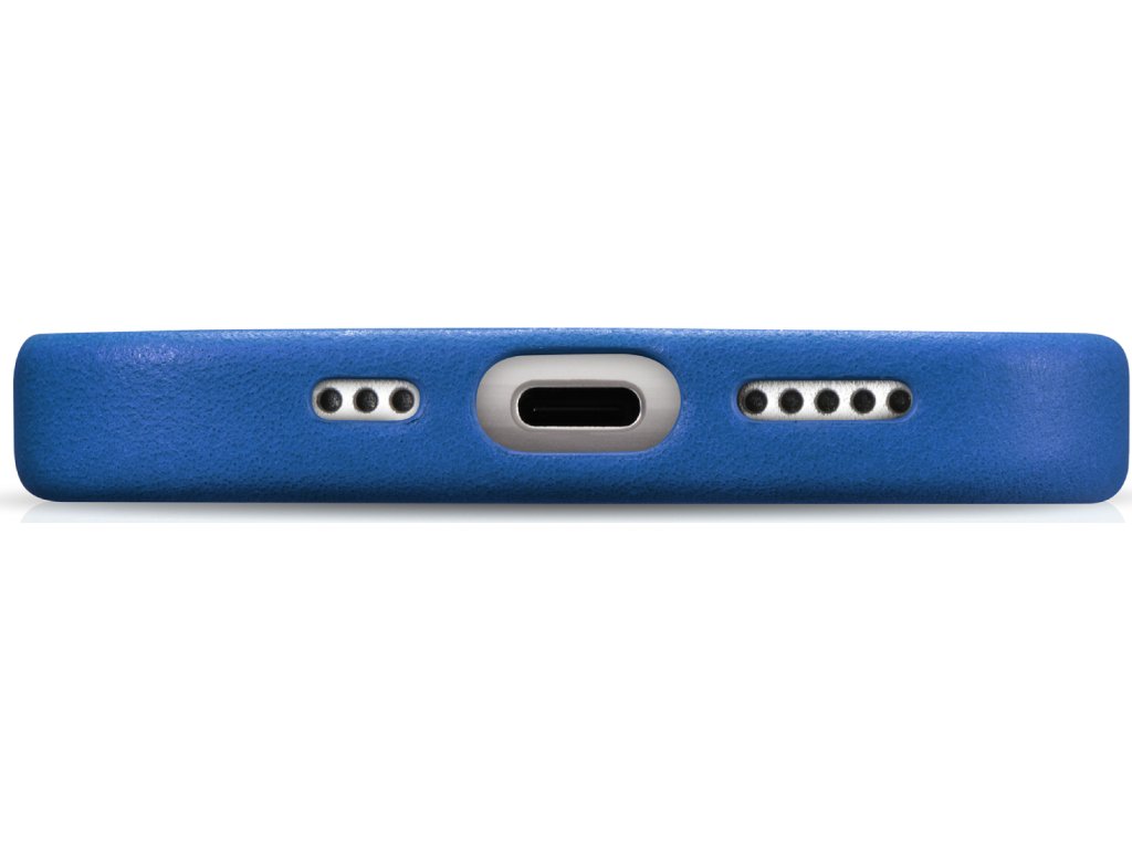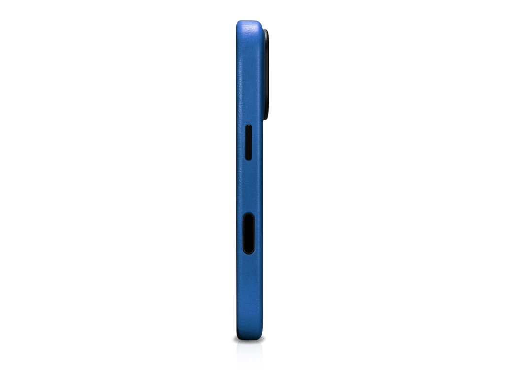 Kožený obal na iPhone 17 - iCarer, OilWax MagSafe Light Blue