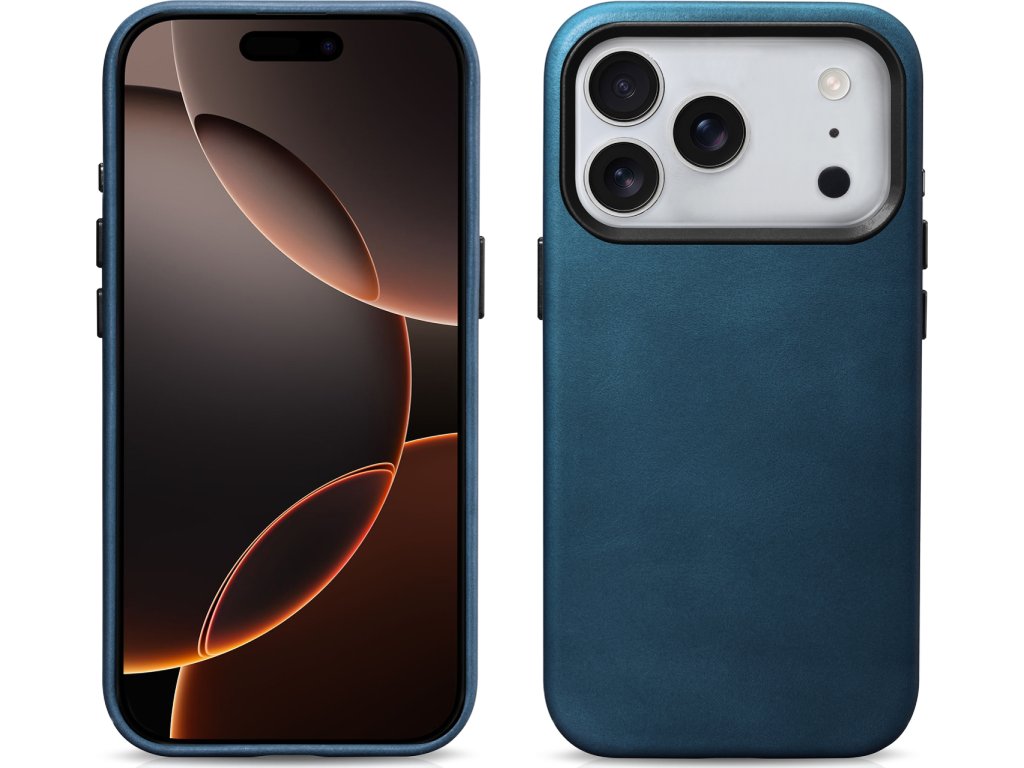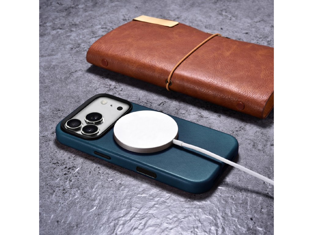 Kožený obal na iPhone 17 Pro - iCarer, OilWax MagSafe Blue