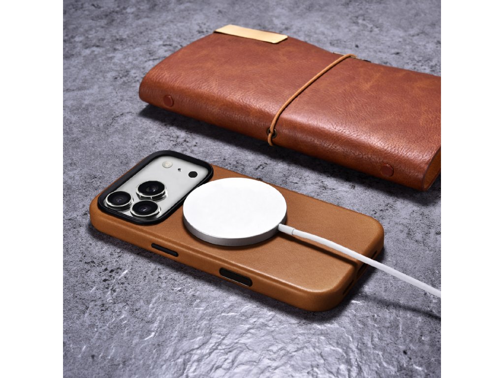 Kožený obal na iPhone 17 Pro - iCarer, OilWax MagSafe Camel Tan