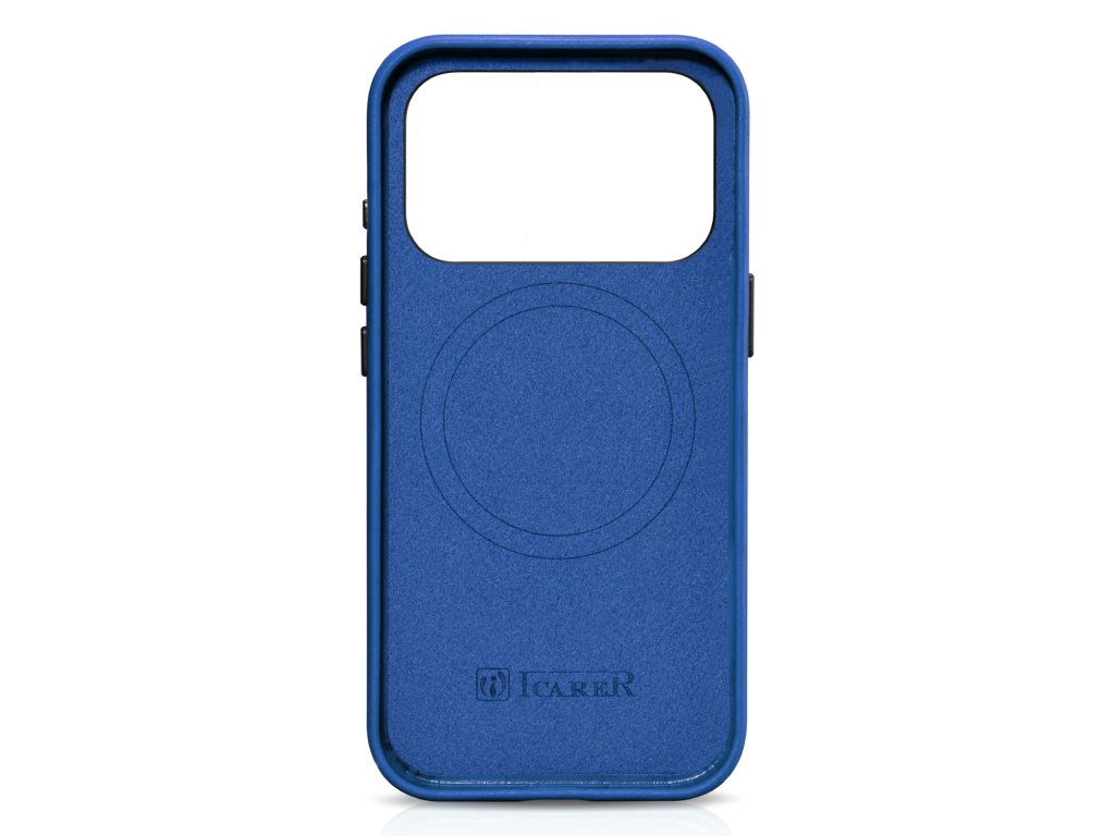 Kožený obal na iPhone 17 Pro - iCarer, OilWax MagSafe Light Blue