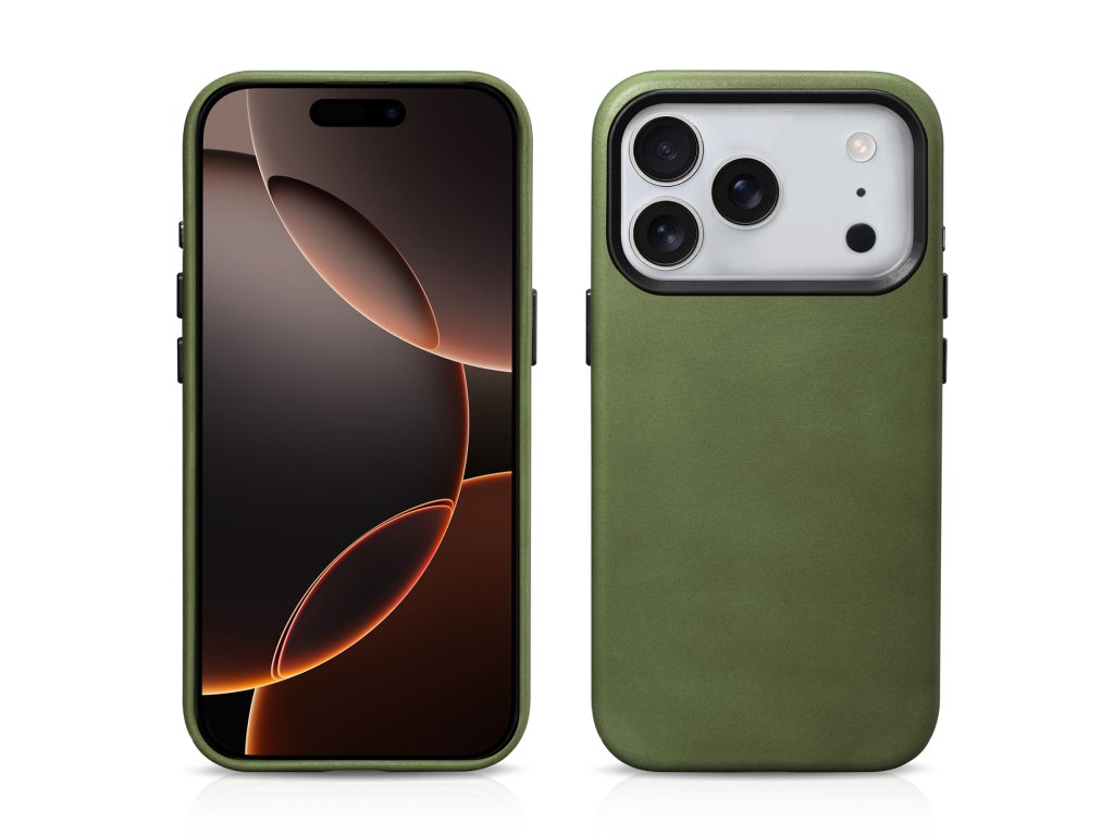 Kožený obal na iPhone 17 Pro MAX - iCarer, OilWax MagSafe Green